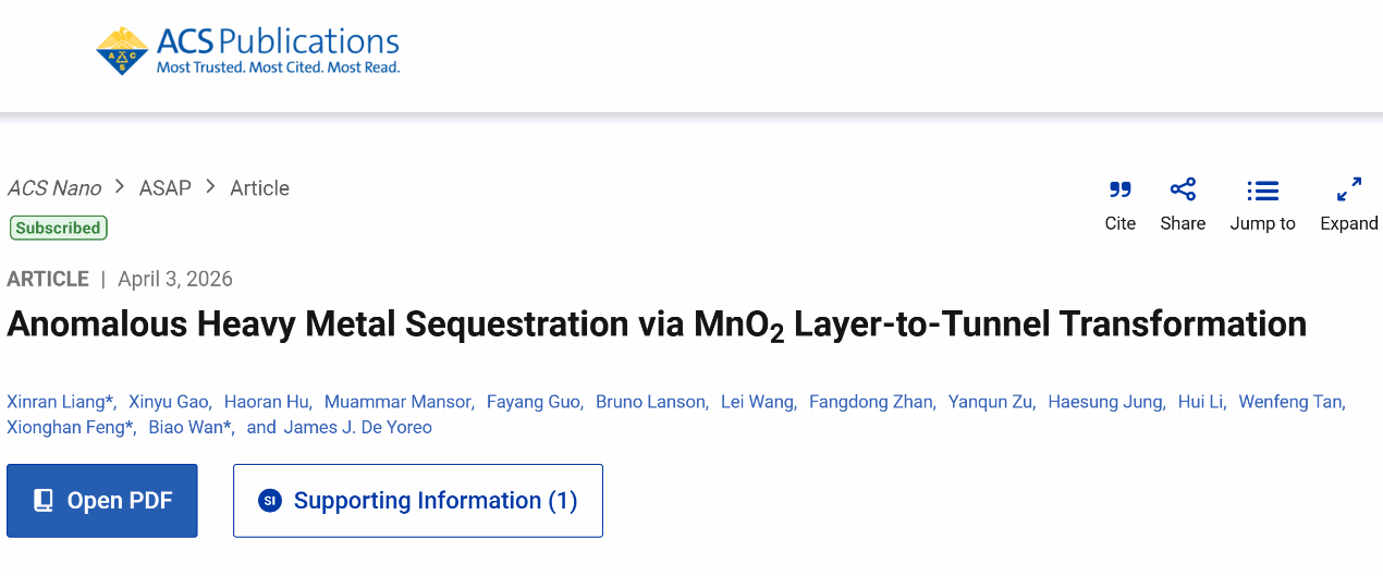 学校研究团队揭示氧化锰定向组装驱动重金属异常稳定封存新机制