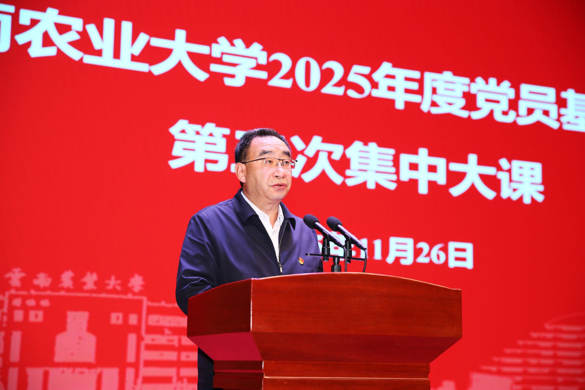 王卫斌强调,当前学校正处在科学谋划“十五五”发展蓝图、深入推进“解放思想、改革创新、奋发进取、真抓实干”大讨论活动成果转化的关键时期,正朝着建设特色鲜明高水平农业大学的战略目标迈进。全体师生党员要从历史性成就中深刻感悟党的领导的根本保证,始终在思想上政治上行动上同以习近平同志为核心的党中央保持高度一致,确保学校各项工作始终沿着正确方向前进。要从历史性变革中准确把握改革创新的强大动力,从党史中学习改革的勇气和智慧,主动对接国家乡村振兴战略、农业强国建设和云南面向南亚东南亚辐射中心建设需求,优化学科布局、创新涉农人才培养模式、提升服务高原特色农业能力,推动学校各项事业再上新台阶。要从历史性昭示中自觉扛起奋发实干的时代责任,党员干部要带头弘扬实干精神,传承学校“开学养正、耕读至诚”的校训精神,将学习成果转化为攻坚克难、干事创业的实际成效,在新时代新征程上展现云农人服务“三农”、建设家乡的新作为。