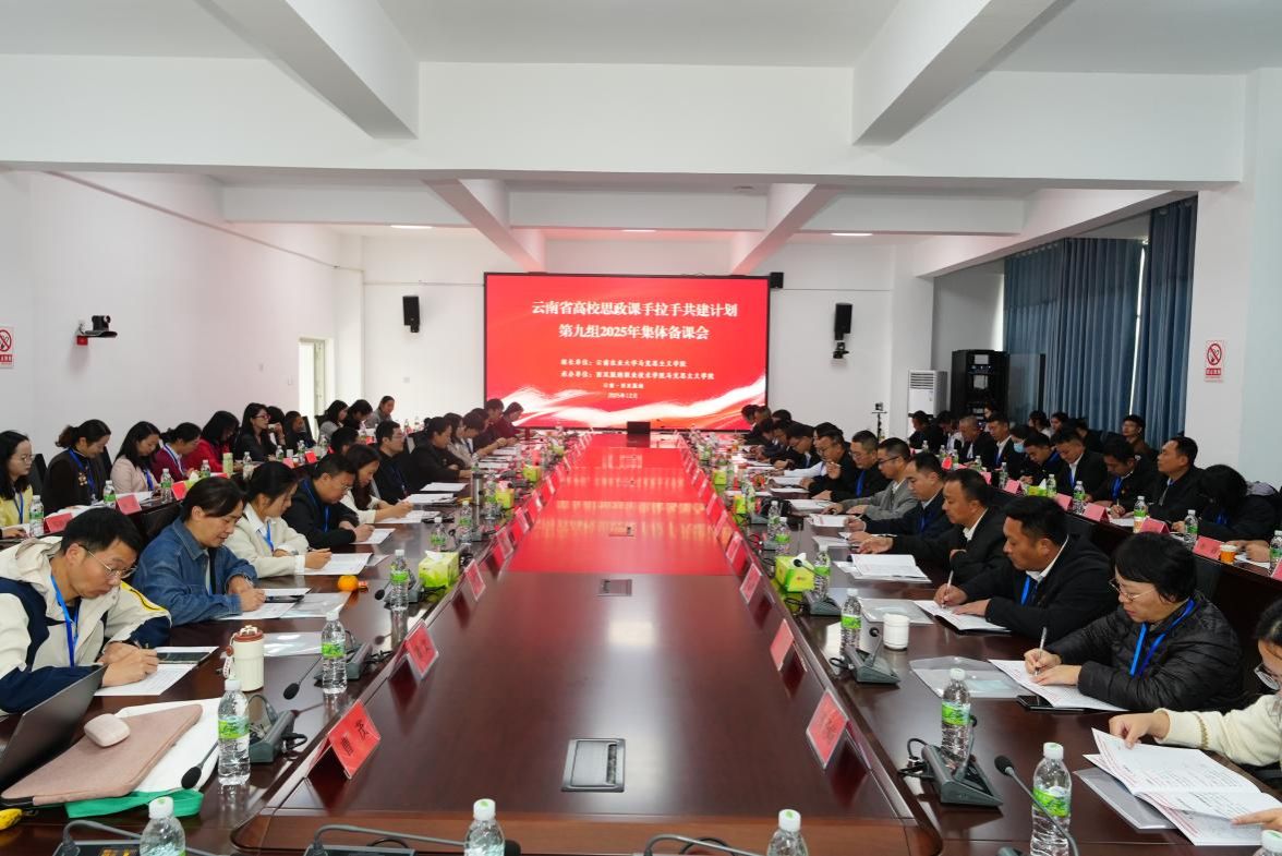 本站消息 12月6日上午,云南省高校思政课手拉手共建计划第九组2025年集体备课会暨西双版纳州大中小学思政课一体化建设交流会在西双版纳职业技术学院召开。活动由学校马克思主义学院牵头、西双版纳职业技术学院马克思主义学院承办。第九组高校马克思主义学院负责人、思政课骨干教师以及景洪市教体局、景洪市中小学思政课教师代表参加会议。