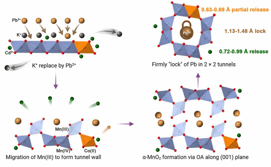 这一研究不仅对隧道结构晶体形成过程中重金属固定机制的认识具有重要意义,也为污染土壤和废水中重金属的长期稳定化治理、环境修复材料的结构设计以及选择性金属捕获策略的构建提供了新的理论依据和研究思路