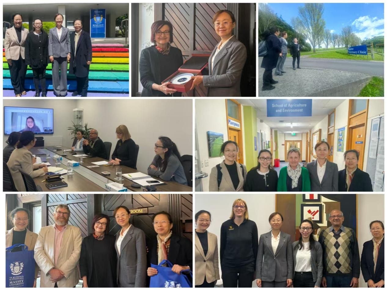 在新西兰梅西大学访问期间,代表团与副校长辛西娅·怀特(Cynthia White)、理学部国际主任高卢比·森古帕塔(Gourab Sen Gupta)、人文社科学部国际主任凯瑞·泰勒(Kerry Taylor)等学校高层进行了会谈,双方就兽医、城乡规划、工程造价、传媒学、发展研究领域的联合教育项目以及师资培养、青年学者互访、智慧课程共建等方面进行了深入的讨论,并达成学校将在2025年年底派出动物科学领域青年教师到梅西大学开展访学,梅西大学将派员在2026年到访学校的共识。