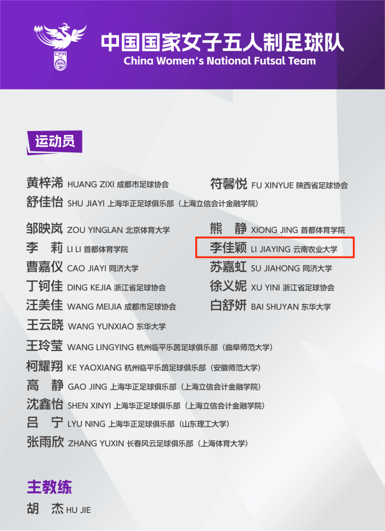 本站消息 近日,中国足球协会下发《关于组织国家女子五人制足球队2026年第一期集训的通知》。学校女子足球队队员、体育学院学生李佳颖成功入选新一期国家女子五人制足球集训队运动员名单,并将随队参加在宁夏灵武举行的国际邀请赛。