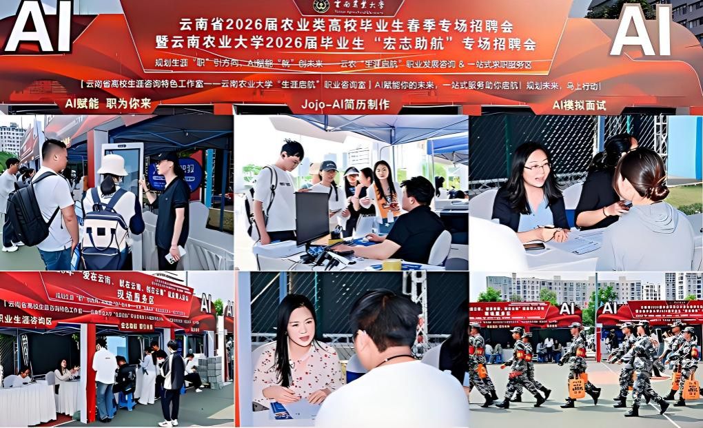 为提升毕业生求职竞争力、保障招聘活动规范高效开展,现场专门设立了“爱在云南,就在云南,创在云南”就业育人活动以及云农“生涯启航”职业发展咨询一站式求职现场服务区,设有AI赋能职为你来、Jojo-Ai简历制作、AI模拟面试区、职业生涯咨询区、宏志助航职引未来帮扶区、简历优化指导区、现场面试安排服务点等多个功能区域,为毕业生提供全流程、专业化的求职指导。同时,招聘会组建了“现场督查”队,严格落实教育部就业工作“三严禁”要求,对招聘现场违规行为进行实时督查,切实维护毕业生合法权益,保障招聘活动公平公正、规范有序。云南广播电视台“就业帮帮团”栏目也专程来到现场,为毕业生开展就业直播帮扶。