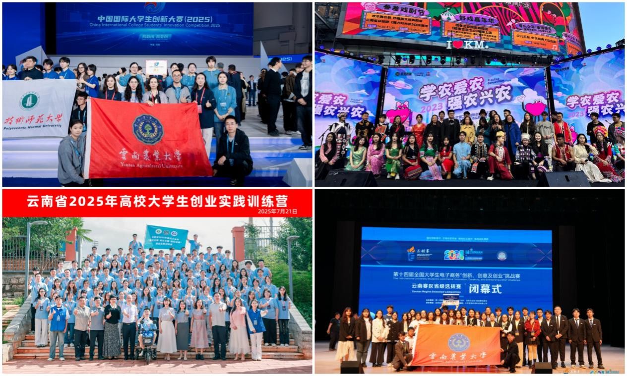 持续深化创新创业与就业协同共促关系,形成各有侧重、相互支撑、融合发展格局。承办云南省首期高校大学生“爱在云南 就在云南 创在云南”创业实践综合训练营,点燃参训学员们对云南的深厚情感和敢闯敢试的创业激情,坚定他们“创在云南、必有回响”的信心与信念。持续打造学校“学农爱农 强农兴农”系列品牌活动,着力提升学生的创新意识和就业创业能力,努力实现创新引领创业、创业带动就业。学校入选“国家级创新创业教育实践基地”和“云南省大学生创业就业实践基地”,获批大学生创新创业训练计划项目立项1656项,其中国家级107项,省级242项,校级1307项;在中国国际大学生创新大赛中获国家级奖项15项,其中金奖1项、铜奖14项,省级奖项91项;在学创杯全国大学生创业综合模拟赛中获国家级奖项4项,省级奖项42项;在全国大学生电子商务创新、创意及创业挑战赛中获得国家级奖项4项,省级奖项24项,获奖层次和数量实现逐年突破。