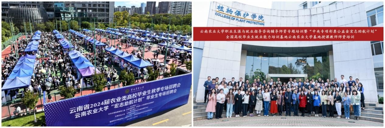 构建贯穿大学四年的“4个1”职业发展教育体系。为新生发放1本《生涯启航》手册,引导新生开始自我探索生涯之路;开设1系列职业发展课程省级金课,外引内培打造60余名专业授课师资队伍;运用好1个省级特色“生涯启航”咨询工作室,持续为学生提供个性化服务;连续19年每年组织举办1场职规类赛事,实现以赛促教、以赛促学、以赛促就。职就创3门必修课全部入选云南省就业创业指导金课,《就业指导》获批校级一流本科课程。延伸课堂教学广度,带领学生走出校园,走进企业、走进园区、走近社会,着力提升求职就业实战能力。建成“云农就创”云就业平台和“生涯启航”咨询服务平台。组织线上线下专场招聘宣讲活动2355场,参与招聘人数60300余人;举办省级农业类毕业生专场招聘会等中大型活动37场,到校招聘单位2562家,提供岗位185400个;开展“书记校长访企拓岗促就业专项行动”,走访企业1428家,拓展就业岗位14096个、实习岗位4018个;举办“留滇有我 就在云南”等就业育人系列活动50余场,开展“农梦飞扬 青春启航”职业生涯体验周,参与学生1.3万余人次,就业能力提升分类辅导培训覆盖8850名毕业生。