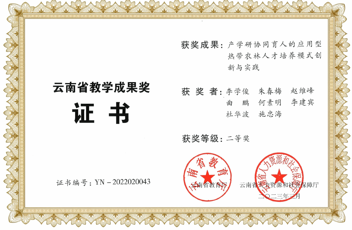 学院坚持“耕读结合、知行合一”,以“懂热区、爱热区、服务热区”为导向,构建产教融合人才培养体系,培育扎根边疆、服务乡村振兴的“新农人”。深化教育教学改革,1个案例入选全国农林院校课程思政优秀案例,5个案例获评东盟农林产教融合优秀案例,培育省级“最美高校班主任”“最美高校辅导员”各1人,热区农林人才培养模式改革获云南省教学成果奖二等奖,人才培养质量稳步提升。强化创新创业赋能,搭建省级众创空间、普洱咖啡主题创业园等创新创业平台,把双创教育贯穿人才培养全过程,孵化学生创业企业63家、自主创业项目312项,毕业生创办企业辐射带动就业232人。累计培养各类毕业生7219人,毕业生去向落实率年均保持在92%以上,实现“以创促学、以学促业”。坚持典型引领,涌现出一批信念坚定、自强奋进、服务基层的优秀学子,其中丁习功同学荣获2022年度“中国大学生自强之星标兵”,他牢记“把书读好、把地翻好”的初心,立足专业所长,组建团队搭建“云农好物”平台,开展助农直播与技术服务,带动咖啡、中草药等特色农产品出山惠农,以青春行动践行新农人使命,成为学院培育新时代新农人的鲜活典范。