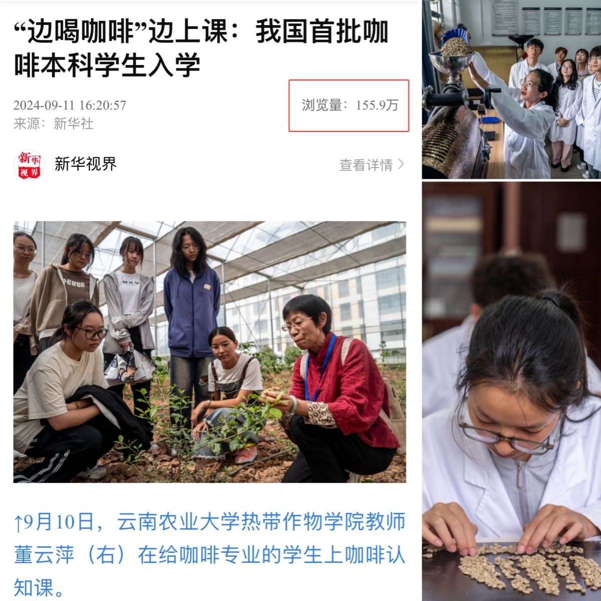 学院聚焦咖啡、橡胶等热带作物,聚力打造具有鲜明学院特色的“热字号”专业品牌。优化学科专业布局,林业硕士点获批招生,博士点列入省级培育,本-硕-博一体化体系初步成型。调整专业结构,集中资源发展特色专业,成功获批全国首个“咖啡科学与工程”本科专业,构建覆盖品种培育、种植管理、加工升级、品牌塑造的“从种子到杯子”全链条教学体系,为产业提供人才支撑。该专业2024年招生以来报考热度攀升,《人民日报》、新华社等主流媒体多次聚焦报道,其中2024年开学之际《“边喝咖啡”边上课:我国首批咖啡本科学生入学》的报道,48小时阅读量破155万,全网转载超50次,社会关注度持续走高。以高水平平台支撑高水平学科,新增“国家天然橡胶产业体系普洱综合实验站”、云南省咖啡重点实验室、云南省特色蔬果绿色生产技术国际联合实验室,思茅区、景谷县、孟连县农民院士科技服务站等省部级平台集聚创新资源、承接重大任务,累计承担国家自然科学基金、省部级等科研项目114项,以科研反哺教学,学科核心竞争力与行业影响力显著增强。