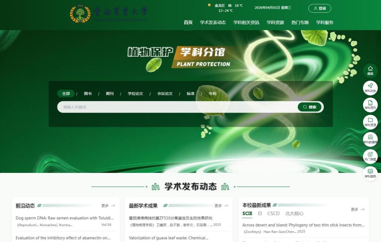 立足学校学科优势,图书馆聚焦植物保护、作物学、畜牧学、草学、食品科学与工程、农业资源与环境、生物学、兽医学等特色学科,建成八个学科分馆,构建针对性强、资源集中的学科知识服务体系。各分馆整合海量专业数字资源,重点建设领域文献信息,形成特色学科资源库,实现专业资源“一站式检索”,帮助师生快速获取科研学习所需资料,节省时间成本、提升效率。同时,学科分馆强化重点学科资源保障,成为支撑学校学科发展的“智慧引擎”。