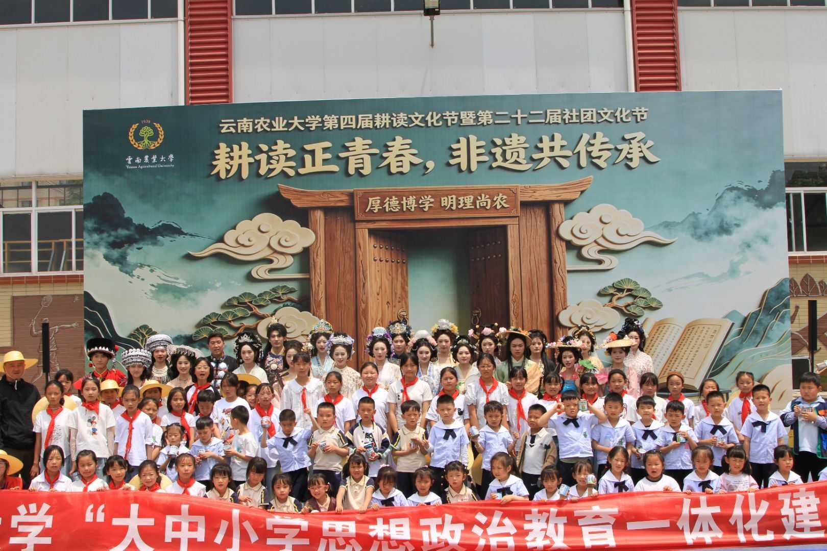 各学院、部门负责人,校友代表,学校师生及农大幼儿园、落索坡小学师生代表参加活动。