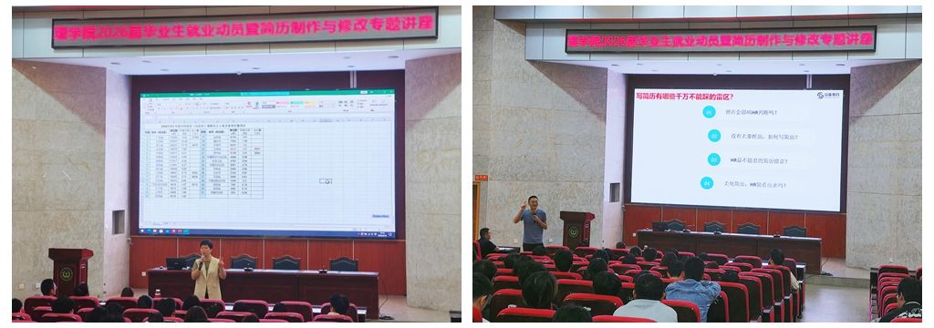 为做好2026届毕业生就业动员,学院在西校区图书馆报告厅举行专题讲座。学院党委书记张娅玲围绕升学、考公、直接就业三大核心路径作动员讲话,引导学生拓宽就业视野,先就业再择业。资深简历指导专家现场拆解网申简历12项核心内容,结合岗位需求讲解简历精准适配技巧。