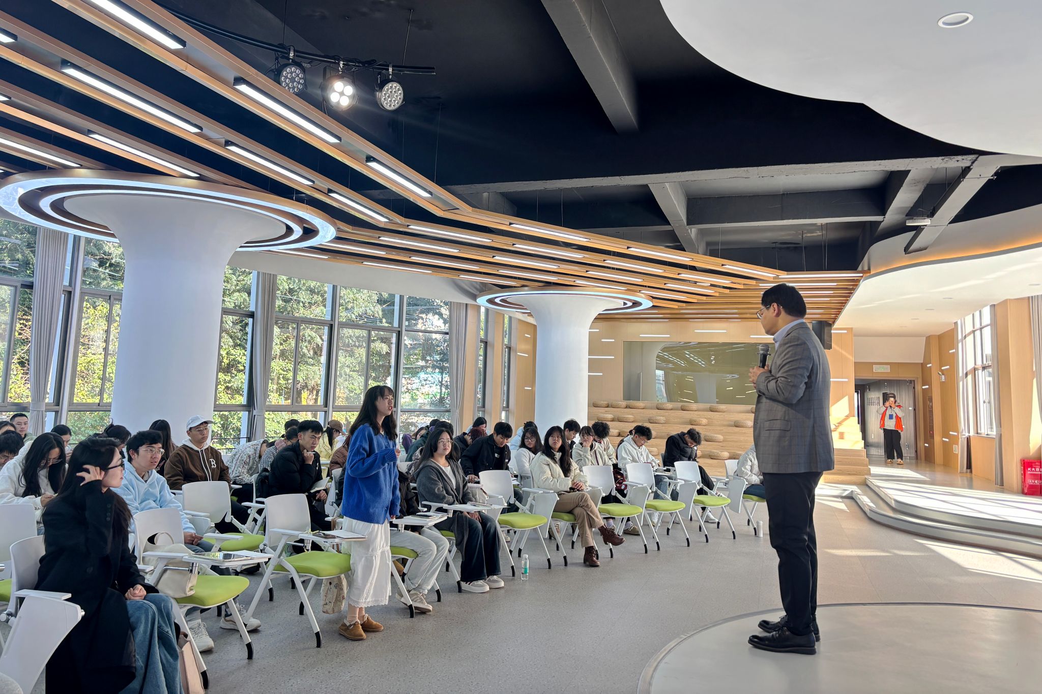 互动环节气氛热烈,同学们踊跃提问,雷松林老师逐一细致解答。此次讲座是马克思主义学院深化思政育人的生动实践,融合改革精神与就业指导,为培养新时代奋斗青年注入强劲动力。