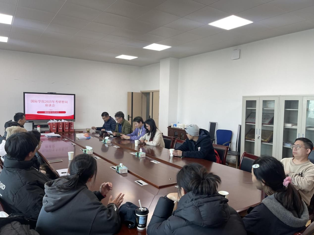 本站消息 12月3日,国际学院在明理楼A区509会议室召开2026届毕业生考研慰问座谈会。学院党委书记毕保良、副书记徐兴倩参会,与全院考研毕业生代表亲切交流,为大家送上关怀与鼓励。
