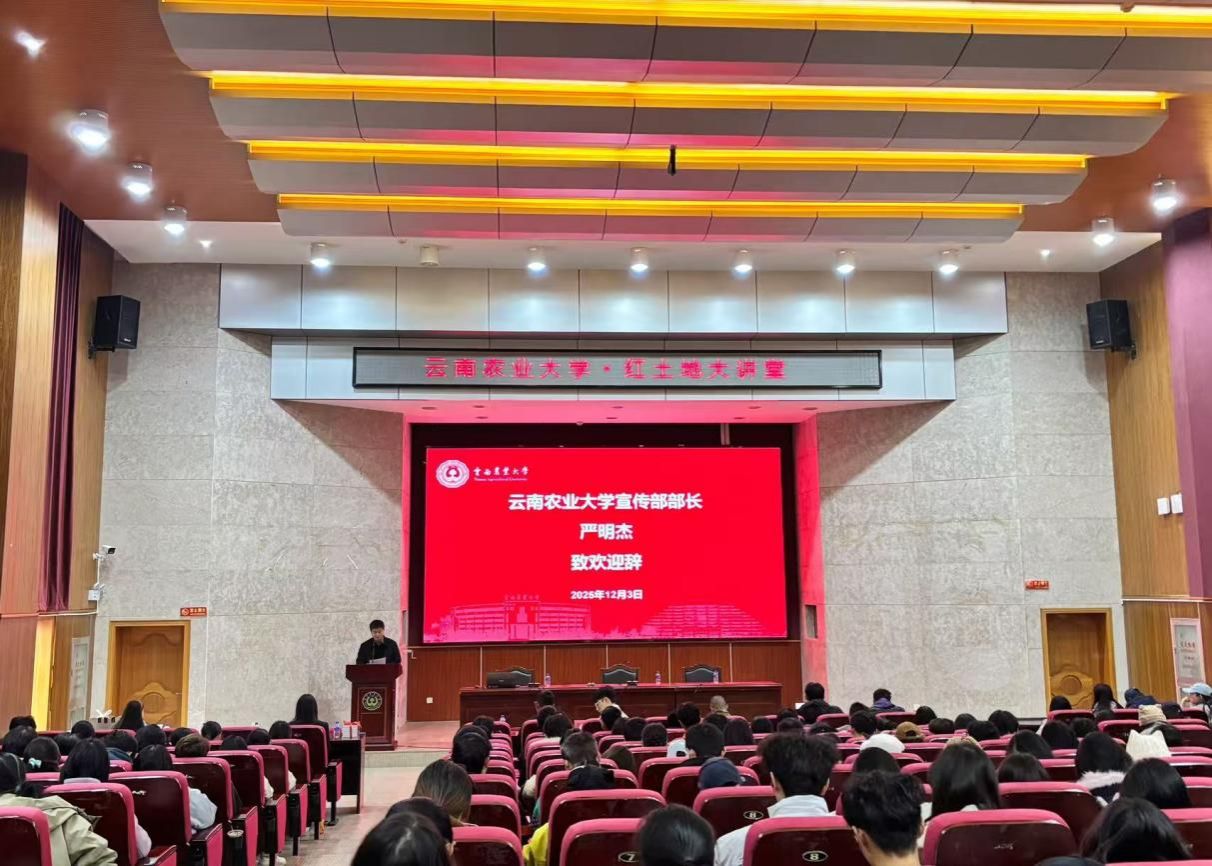 严明杰致欢迎辞对张宜良博士的到来表示热烈欢迎,结合党的二十届四中全会精神和学校发展定位,希望在场师生以榜样为镜,找准成长坐标,在服务国家发展与乡村振兴实践中实现人生价值。