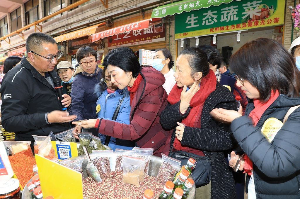 本站消息 12月18日,由昆明市台联指导、园林园艺学院滇台中心联合市台联经济专联会共同举办的台商台胞“遇见篆新、读懂云南”主题调研活动在篆新农贸市场举行。市台联党组书记段超、会长李为民、学校统战部副部长罗蓉、台盟云南省委委员杨圣元、盘龙区委统战部副部长冯云福出席活动,在昆台商台胞代表、昆明市台联及经济专联会、文化专联会,盘龙区台联、五华区台联相关领导干部、园林园艺学院相关师生共40余人参加了调研。