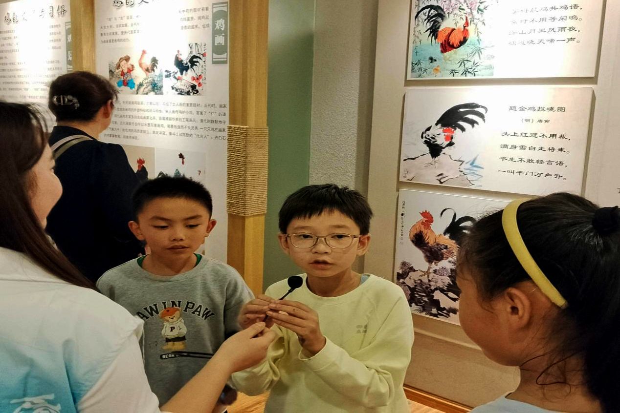 刚踏入博物馆大门,同学们就被充满浓郁文化氛围的展厅所吸引。明亮的灯光下,一幅幅生动的展板、一件件珍贵的实物展品,讲述着“鸡”的故事。
