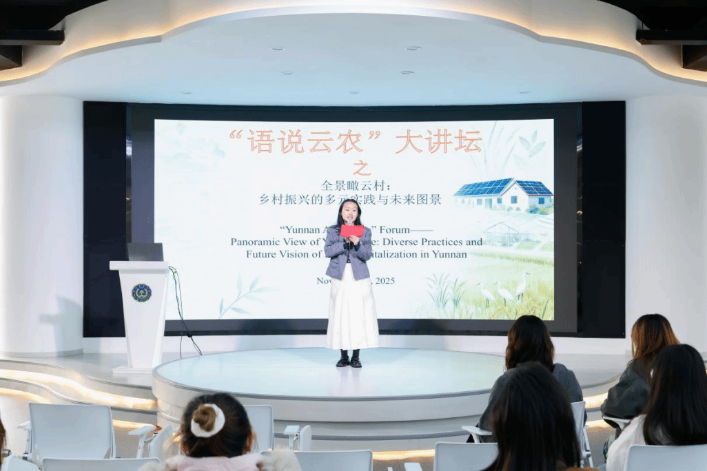 “语说云农”大讲坛围绕“云南故事”“农耕文明文化”“云南农业大学校园故事”核心,进行多语种专题演讲。本期主题为“全景瞰云村:解码云南乡村振兴的多元实践与未来图景”,外语学院同学向到场学生深入讲述了云南从脱贫攻坚到乡村振兴的特色发展之路。