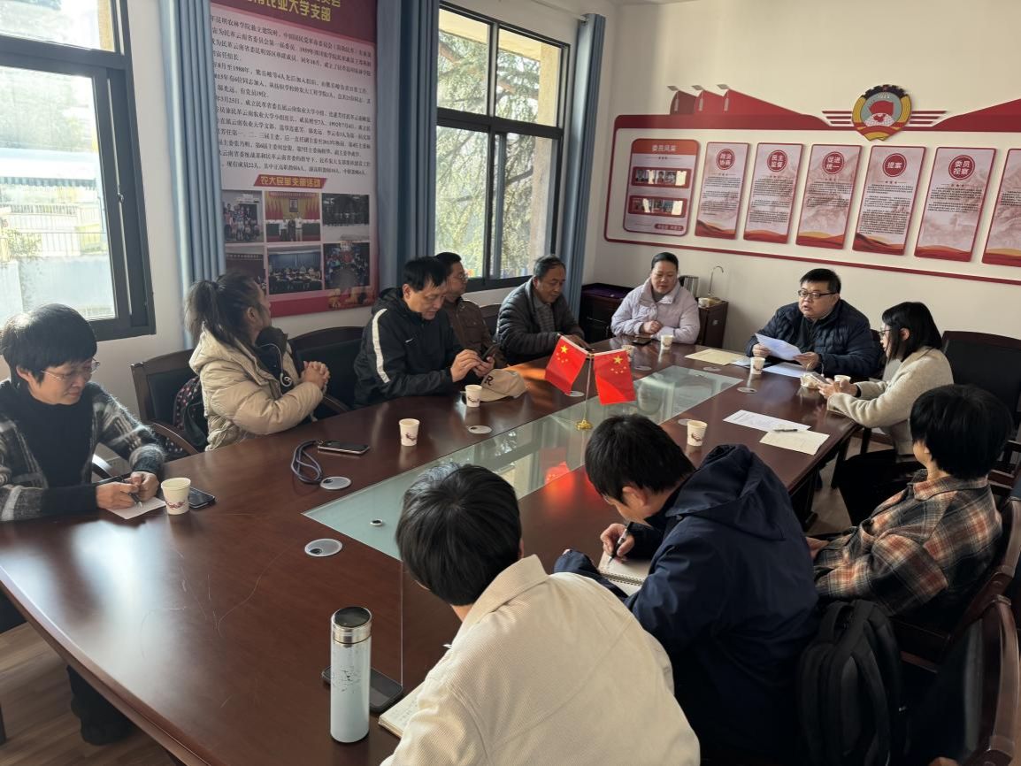 本站消息 11月26日上午,学校民革支部在秋韵楼“民革党员之家”召开党员大会,旨在强化基层民主党派组织思想建设,凝聚服务学校发展与推进云南农业现代化的合力。会议由民革支部委员唐丽明主持。