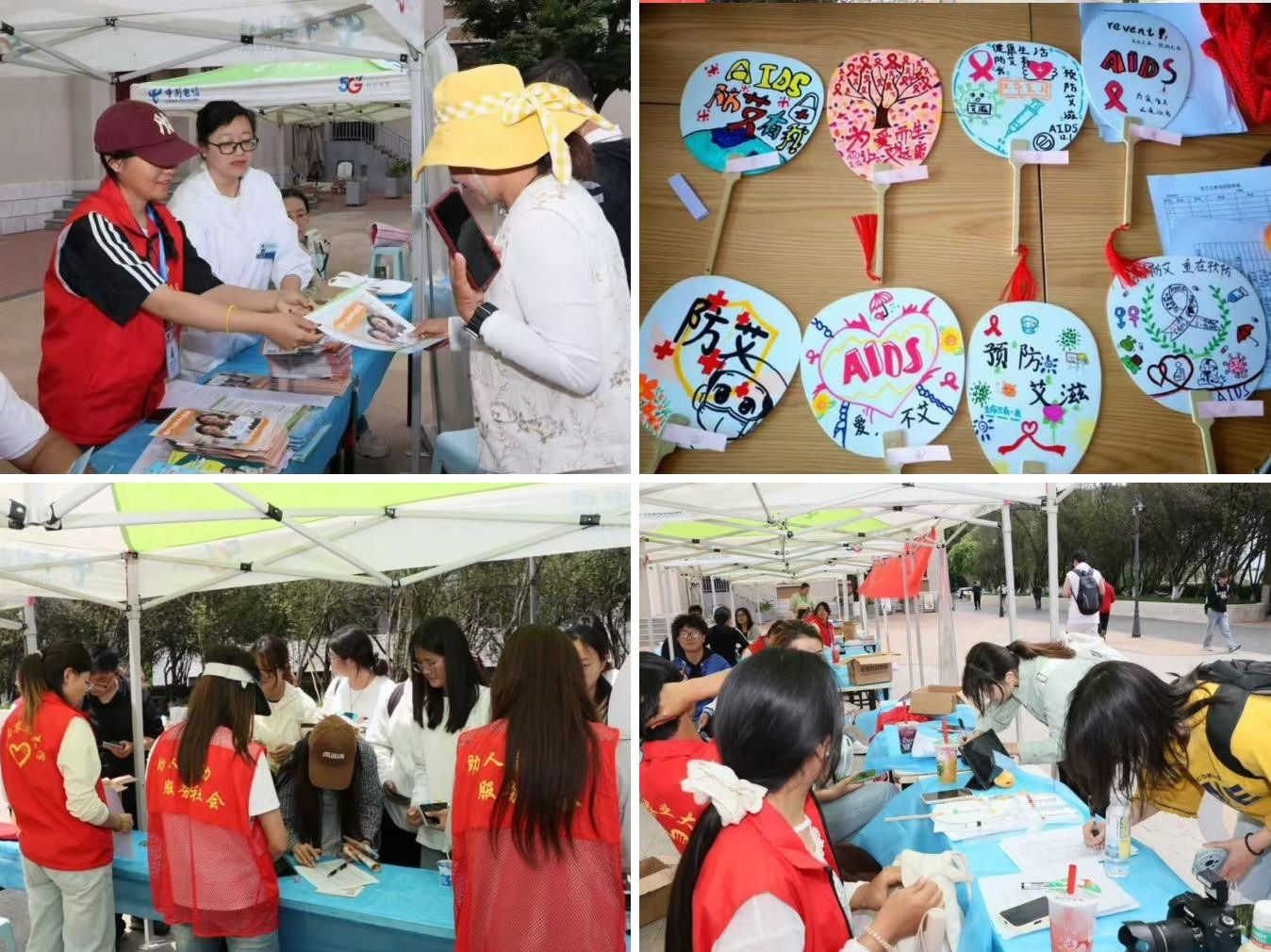 活动现场设立了四个宣传板块吸引学子驻足参与,同学们通过转动转盘抽取题目,在趣味答题中加深对艾滋病、尖锐湿疣等性传播疾病的传播途径、预防措施的认识。志愿者通过讲解和演示避孕套的正确使用方法,帮助同学们在活动中解锁健康密码,增强自我保护意识。社团同学们以“绘画防‘艾’”优秀扇面作品讲解健康理念,现场绘画传递健康正能量,以投票方式点燃同学们参与热情。校医院的医生们用通俗易懂的语言宣讲乙肝、HPV、流感等常见疫苗知识,耐心为同学们答疑解惑,引导同学们树立科学健康观念,普及乙肝等疾病的防治科学知识,提高自我防护意识,降低感染风险。
