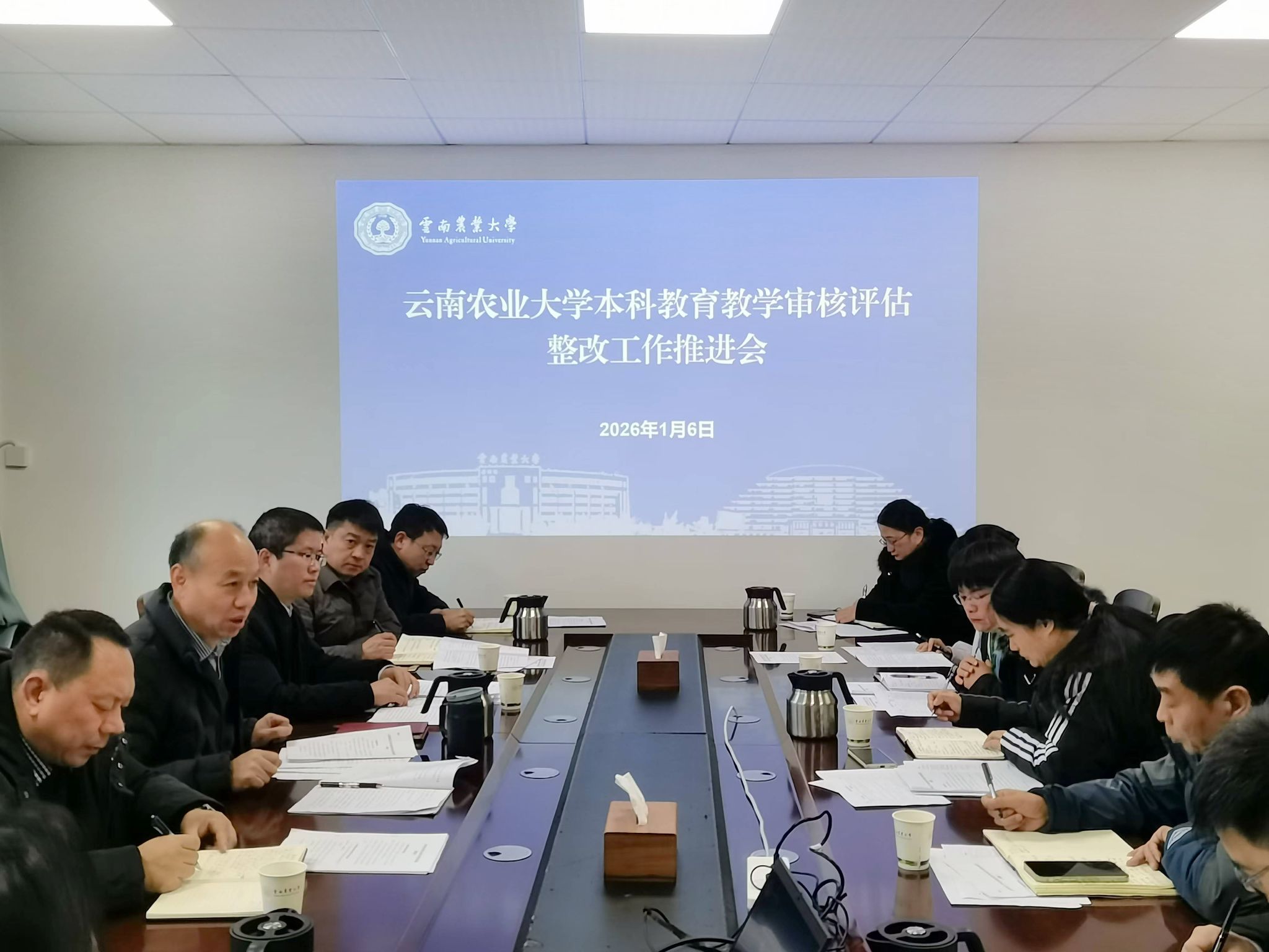 本站消息 1月6日上午,学校在耕读楼310会议室召开整改工作总结推进会,副校长赵正雄出席会议并提出工作要求,牵头和参与整改工作的相关部门和学院负责人参加会议。教学质量监控与评估中心主任廖国周主持会议。会上,赵正雄针对终期整改及总结报告编制工作提出四点要求。他强调,一是锚定目标提速收尾,围绕整改目标加大落实力度,确保所有整改任务于本月内全部完成,为总结报告编制奠定坚实基础;二是对标清单攻坚清零,对照整改问题清单逐项复查,...