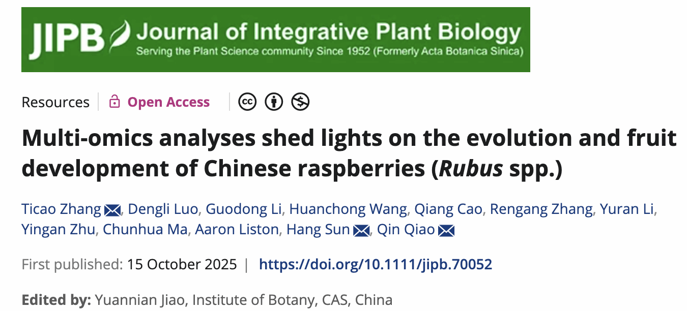 本站消息 近日,学校园林园艺学院乔琴教授牵头的云南省小浆果创新团队与中科院昆明植物所等单位合作在植物学一流期刊Journal of Integrative Plant Biology(5yearIF=10.8)在线发表了题为“Multi-omics Analyses Shed Lights on the Evolution and Fruit Development of Chinese Raspberries (Rubus spp.)”的学术论文。该研究通过多维组学分析,系统揭示了中国分布的悬钩子属(树莓)植物的系统演化关系、亚基因组结构和着丝粒特征和杂交起源,探讨了果实品质性状形成的分子机制,为树莓遗传育种与资源利用提供了理论依据。这是该合作团队继蔷薇科草莓和山楂研究发表在PNAS(2021)、Nature Genet(2020)、JIPB(2022)、PBJ(2024)之后,在蔷薇科园艺植物领域的又一篇原创成果。