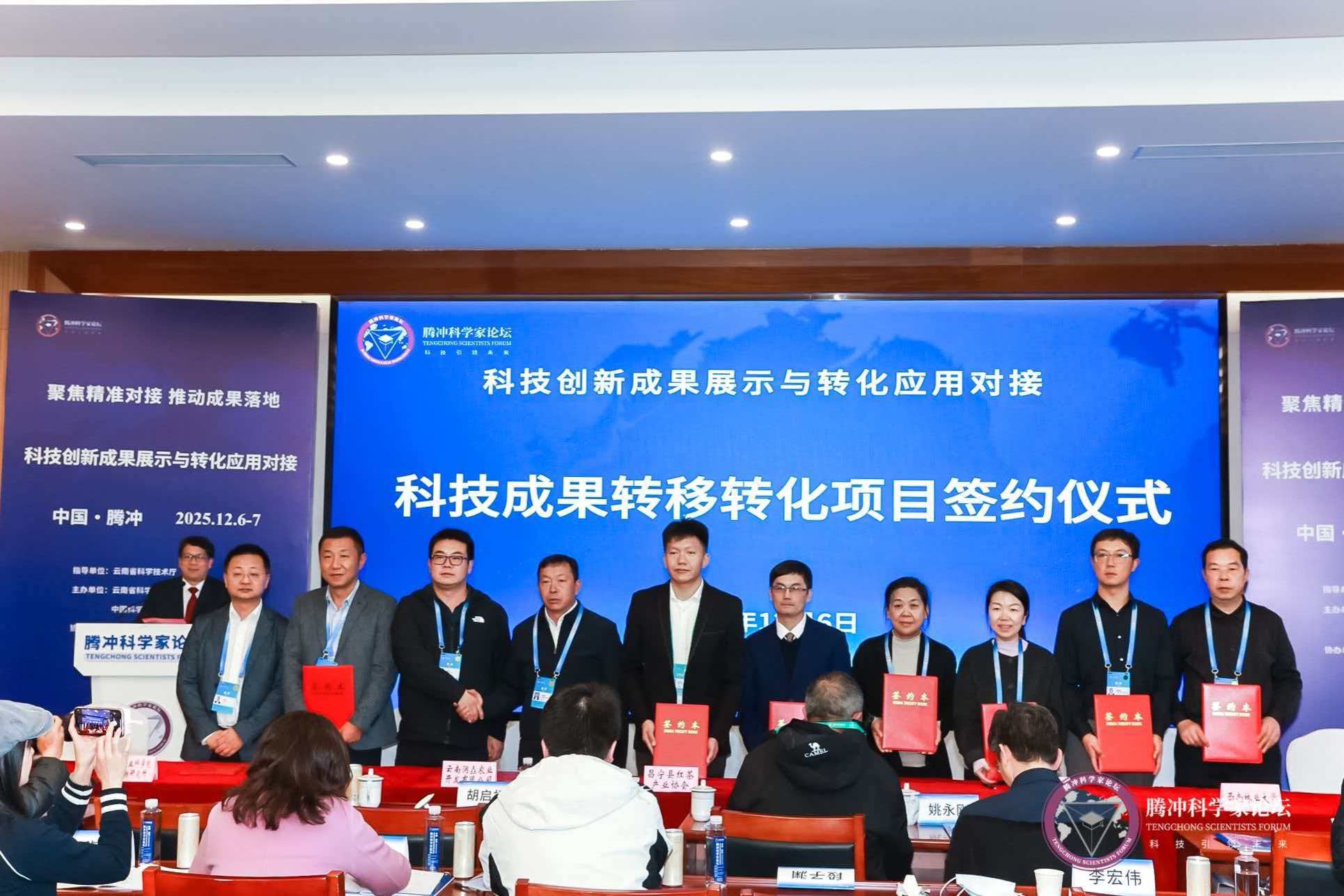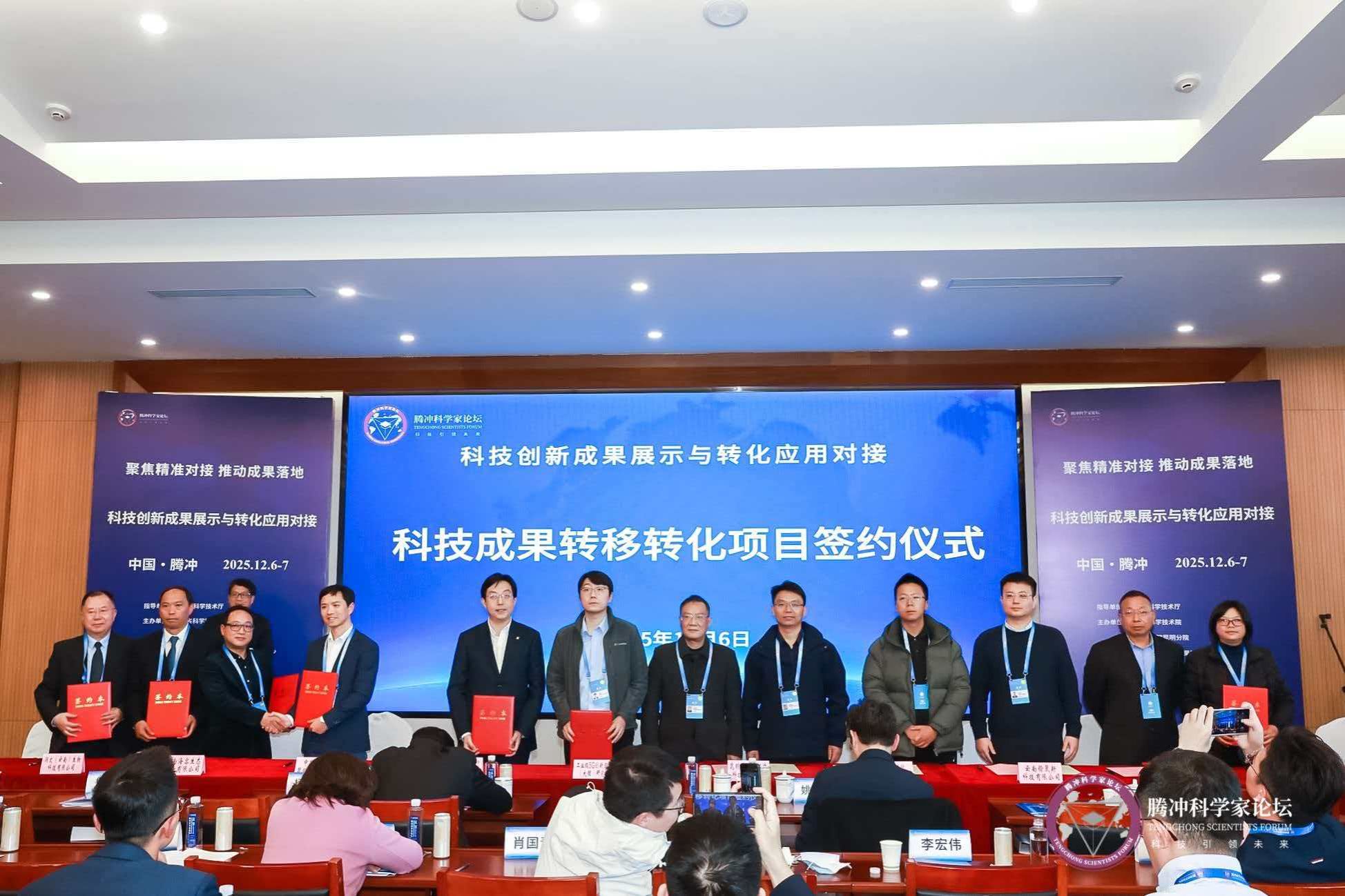 会上,岩白菜素高产菌株生物制造成果转化项目获省科学技术院成果转化第一推介项目,该项目采用合成生物学技术,实现了处方药岩白菜素在微生物细胞工厂的高效生产,产量达到国内领先水平,大幅降低了现有生产成本,标志着我校在生物制造产业创新突破转化落地。翡翠天麻系列新品种与蜜环菌菌株转让项目,推动了中药材产业品种化的市场进程,为打造腾冲翡翠天麻产区提供了有力的科技支撑。
