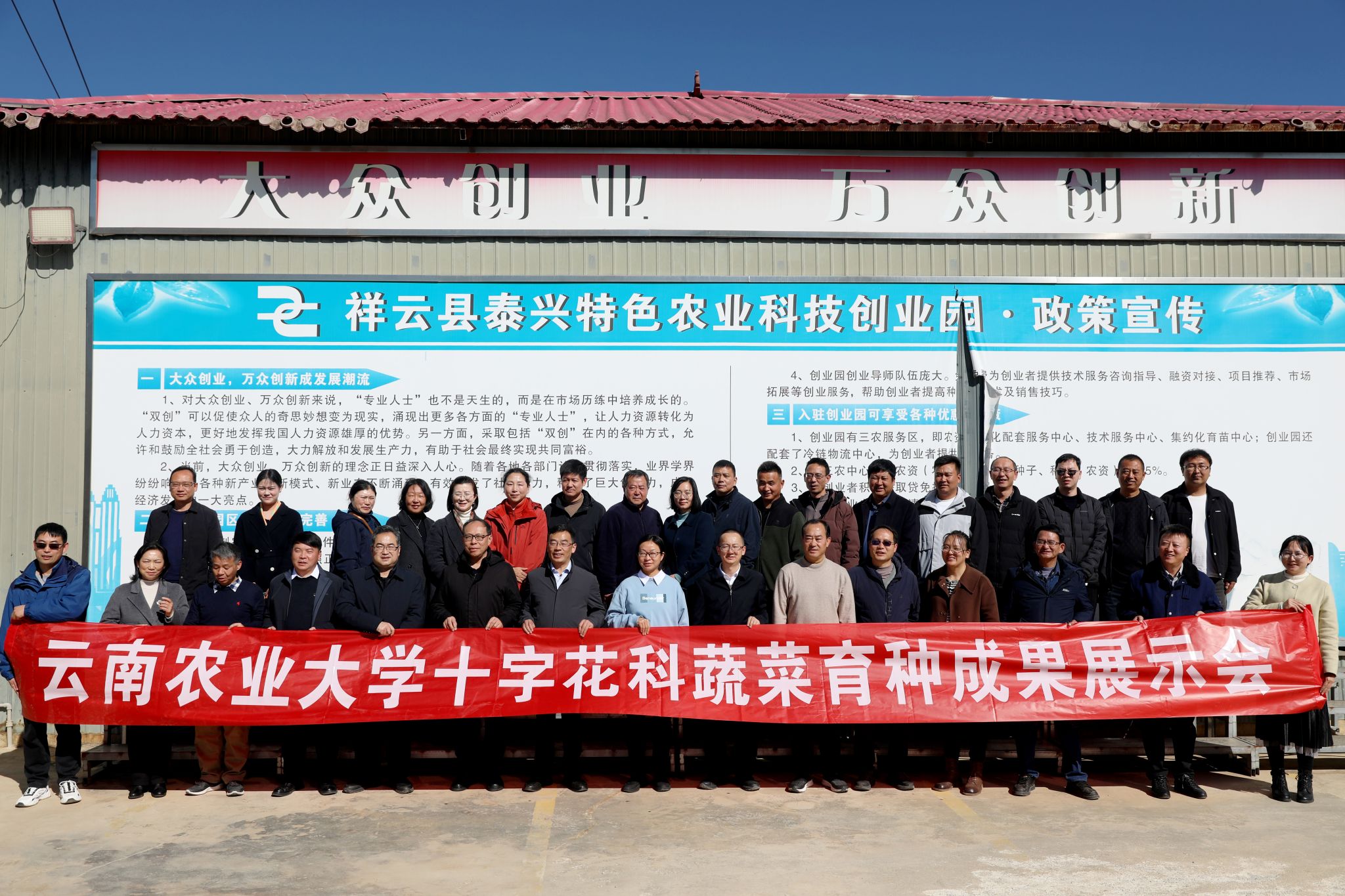 省科技厅、农业农村厅、省科协,祥云县委、县政府,大理州科协,祥云县农民院士科技服务站,祥云泰兴农业科技开发有限责任公司等龙头企业相关负责人,以及学校相关部门、学院负责人、专家教授与学生代表共同参会。