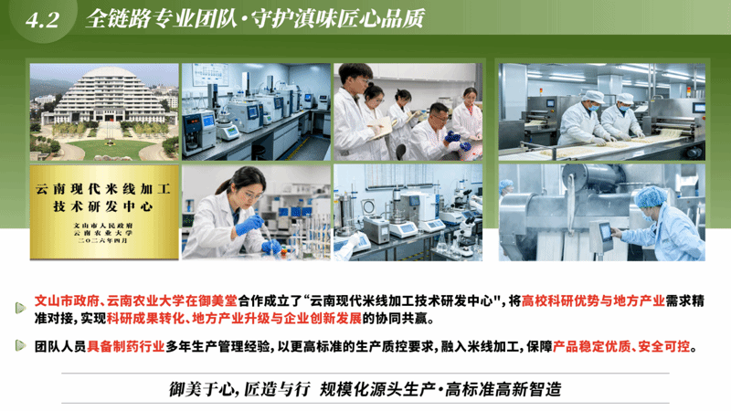 凭借学校硬核科研赋能,该品牌米线实现纯米精准配比、全链路质控管理、快速检测安全可溯源,米线口感爽滑Q弹、耐煮不糊、久放不坨,真正把文山百年老味道,做成标准化、规范化、品牌化的品质新标杆。截至2024年,文山以米线为代表的早点及小吃产业店面数量已突破2000家,总产值约20亿元,此次校地企三方协同合作正是推动这一地方特色产业从“街头小食”迈向“百亿产业集群”的关键举措。