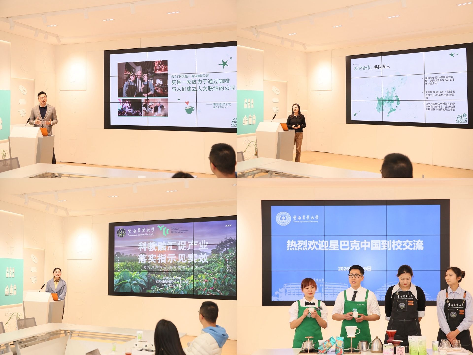 本站消息 1月19日,星巴克中国高级副总裁、中国首席伙伴资源官毛景弘一行莅临学校,就深化校企合作、推动咖啡产业高质量发展深入交流。校长、云南省咖啡现代产业学院理事长李永和,副校长、云南省咖啡现代产业学院院长李宏出席座谈会。