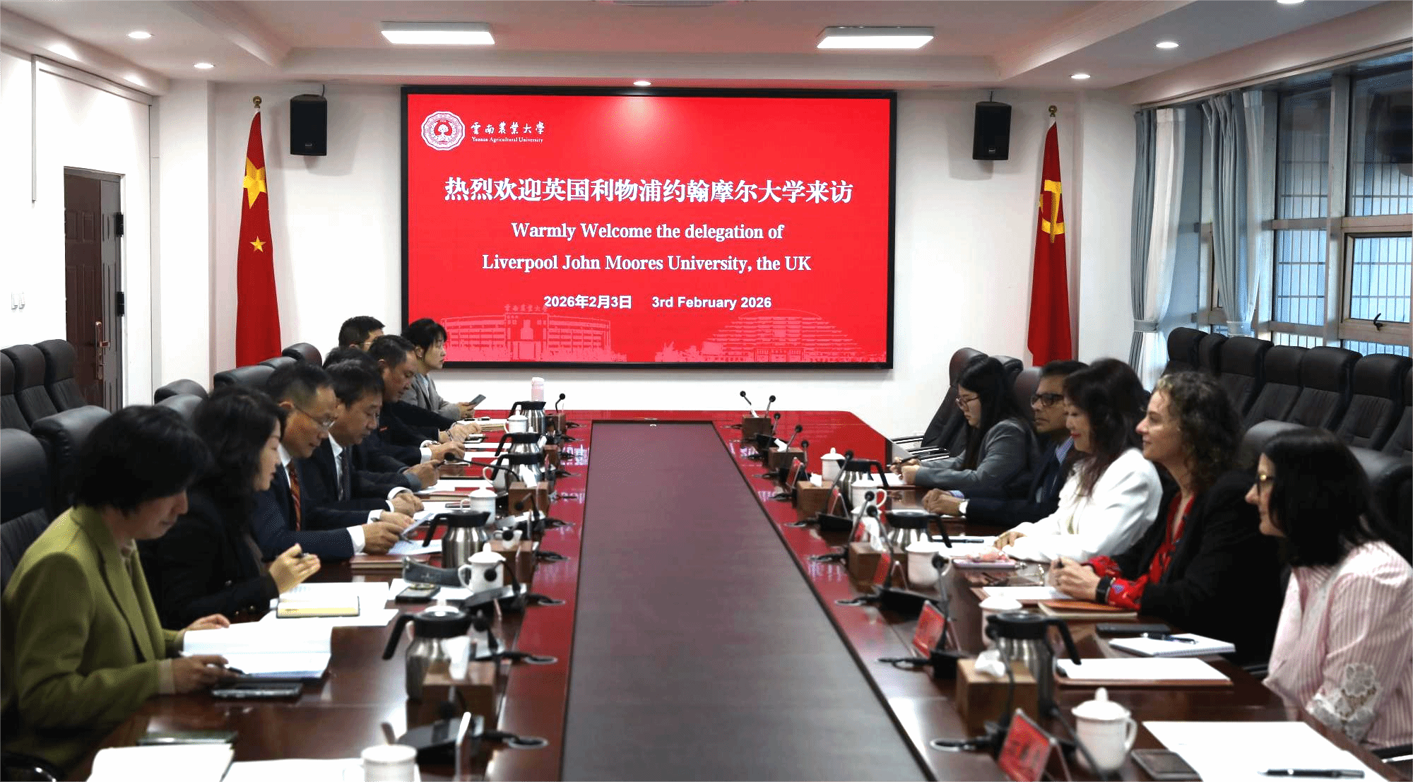 本站消息 2月3日上午,英国利物浦约翰摩尔大学副校长Julia Wang博士、运动科学学院院长Rebecca Murphy博士、药学与生物分子学院院长Satyajit Sarker教授一行6人到访学校,与李永和校长在耕读楼301会议室举行了合作会谈。会议由魏红江副校长主持。对外合作交流处、农学与生物技术学院、动物医学院、食品科学技术学院、体育学院、国际学院相关领导和老师参加会议。双方围绕深化中外合作办学、扩大师生交流、加强科技合作等议题展开深入交流,共叙友谊、共商发展。