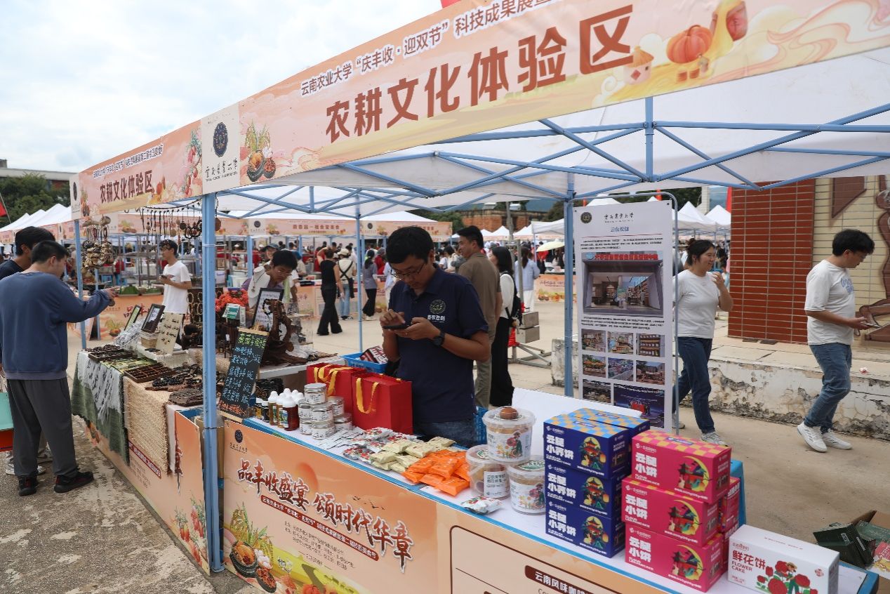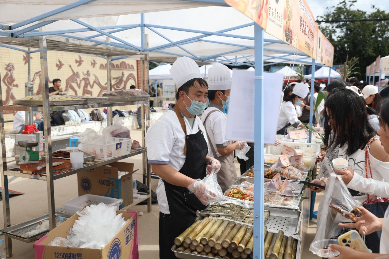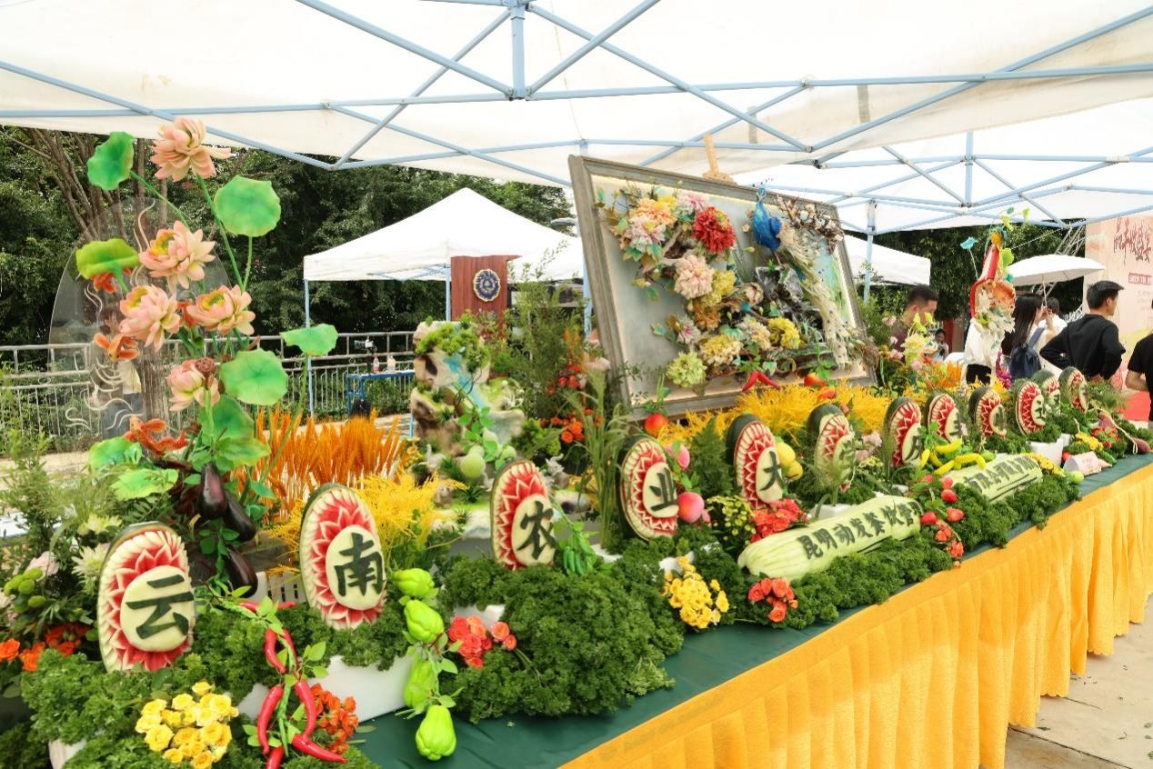 在美食体验区,校内各食堂推出拿手菜、地方风味小吃与节日特色膳食;“农大丰收宴”主题展区以秋季丰收食材和科技成果为主打造大型主题菜肴和拼盘,引得众人驻足观赏品鉴。