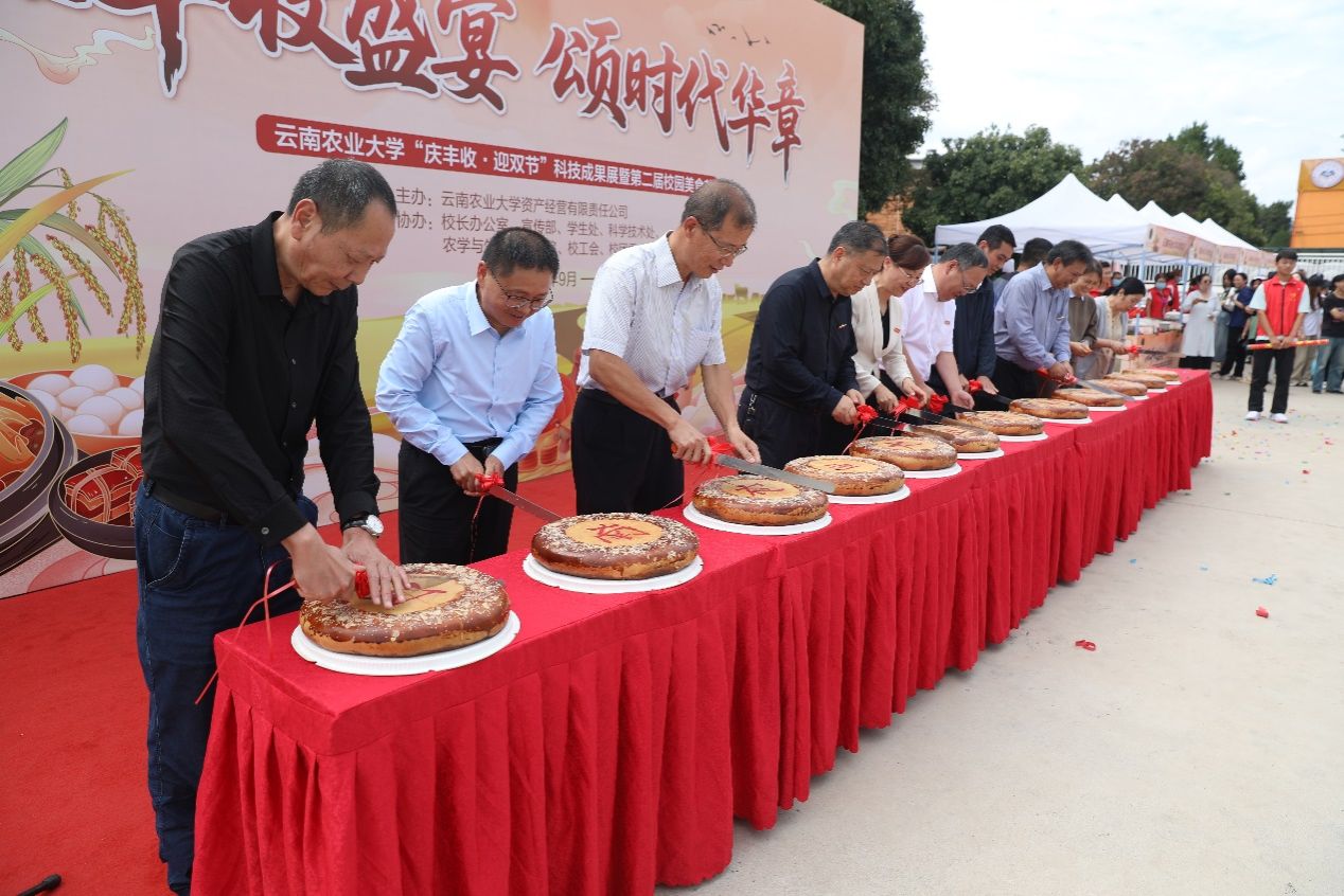 本站消息 稻黍金黄,瓜果飘香,9月23日,恰逢秋分节气,沃野田畴尽是丰收景象,田野间满载着丰收的喜悦。为礼赞第八个中国农民丰收节,学校“庆丰收·迎双节”科技成果食材展暨第二届校园美食节在学校东校区体操馆操场举行。省科学技术厅农村处副处长刘坤、校党委副书记黄鹤平、校纪委书记陈文、副校长张慧等领导出席活动。