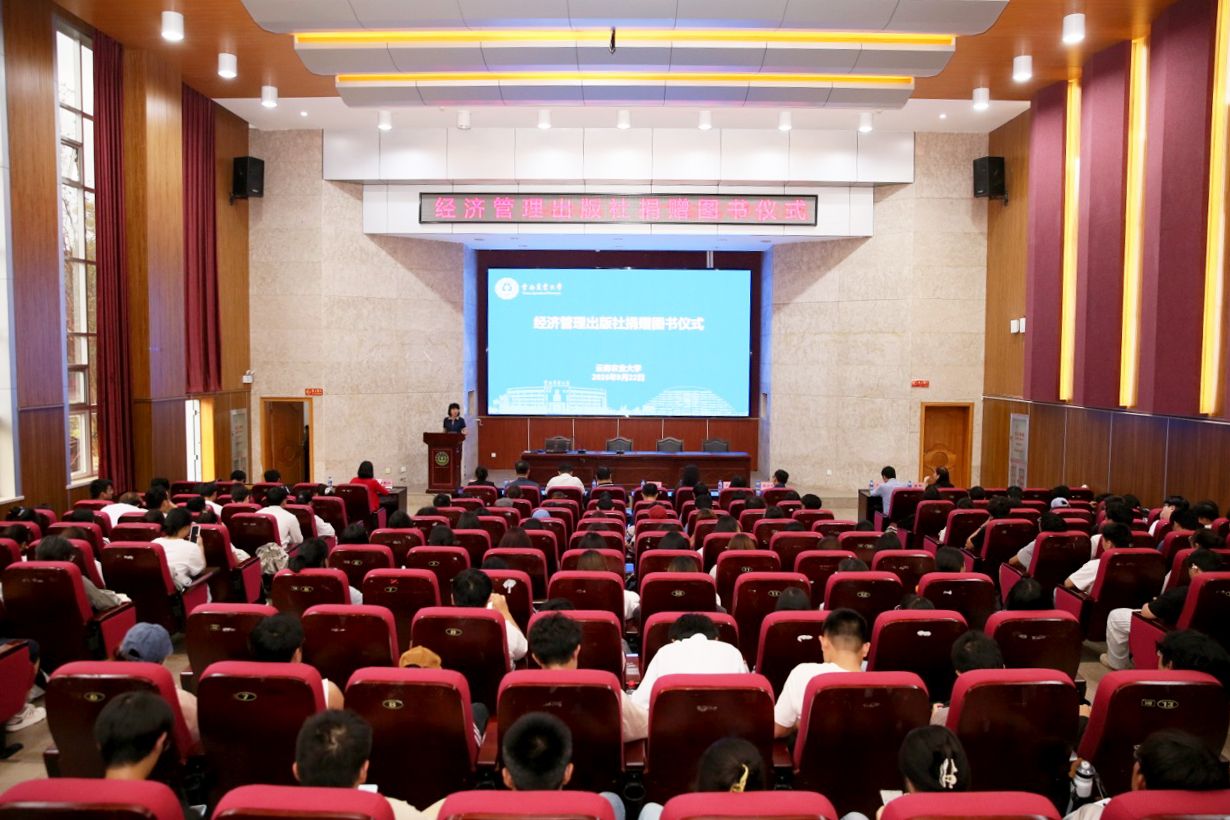 本站消息 近日,中国社会科学院经济管理出版社向学校捐赠图书,助力学校书香校园建设。群言出版社社长马红治、编辑中心主任李群,经济管理出版社经世分社社长曹靖,民盟中国社会科学院委员会主委王昌海、副主委胡澎、委员赵欣悦出席捐赠活动。学校党委副书记徐华,党委统战部、图书馆、国际学院部门负责人,师生代表共200余人参加活动。