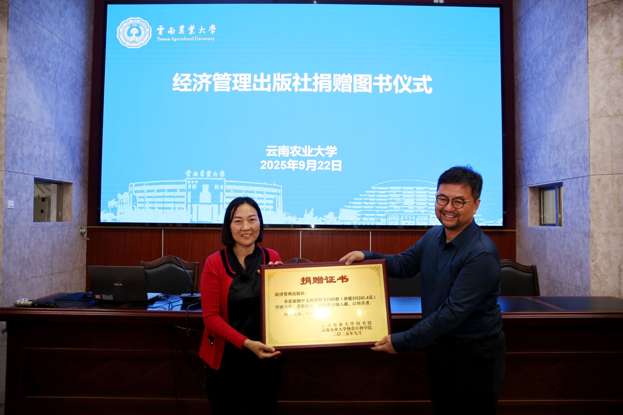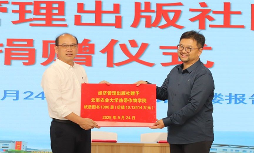 徐华代表学校表达了诚挚谢意,经济管理出版社图书捐赠不仅是对学校文献资源建设的支持,更是对农业教育事业的精神鼓舞。高校肩负着为党育人、为国育才的神圣使命,必须深入推进书香校园建设,引导师生养成良好的阅读习惯,涵养品格修养。
