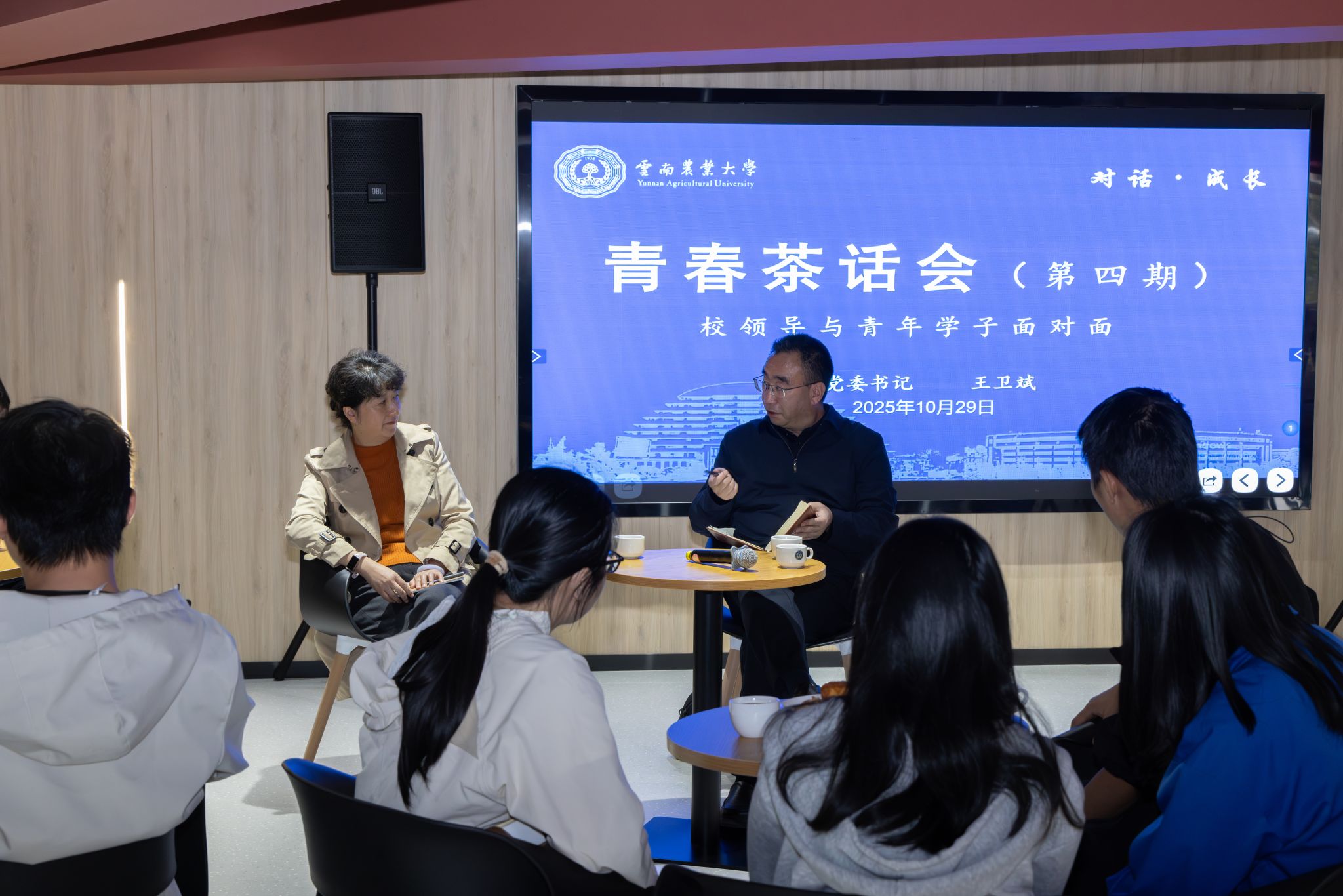 本站消息 10月29日,学校在学生社区举办了以“对话·成长”为主题的“青春茶话会”校领导与青年学子面对面活动。校党委书记王卫斌、校党委副书记徐华与联系班级和各学院的40余名学生代表交流对话。
