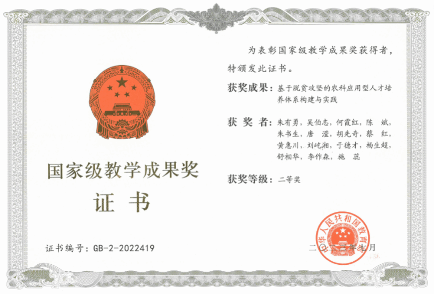 教学改革深推进,人才培养提质效。以新农科建设为引领,构建特色人才培养体系。三年来,建成国际优质专业、国家一流专业各1个,植保专业通过全国农科三级认证,省级专业综合评价1A1B;获国家教学成果二等奖1项,获批国家级一流课程6门、省级及“101”课程16门,出版国家级和省部级规划教材16部,建成耕读教育实践基地6个,虚拟仿真实验项目19项,软件著作权9件,形成数字课程思政案例489个,立项教改项目43项。创新培养模式,创办农科拔尖创新“有勇班”;学生获省级以上竞赛奖项70项(国家级31项),发表论文30篇(SCI 17篇),获国家发明专利8件;15名学生赴美日等国知名高校交流学习,考研升学率提升至38.89%,毕业生综合满意度升至96%,为学科冲A培育了一批“知农、爱农、兴农”的高素质后备力量。