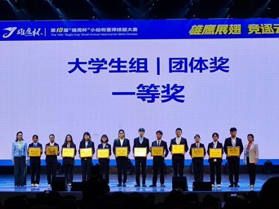 三、育人体系臻完善,人才培养质量高。学院动物医学专业获批国家一流本科专业建设点,专业综合评价达B-,兽医公共卫生专业以核心课程组长单位参与教育部“101计划”,并入选云南省新兴专业建设点。建成6个教学团队(含1个省级黄大年式团队、1个省级课程思政团队),培育6名教学名师(含1名省级课程思政名师)。教改项目获批57项(含1项国家级),省级优质课程达6门,全部46门专业必修课完成评价,A级以上8门、B级21门、C级17门,B级以上占比63%。主编/副主编国家级和省级规划教材20部,建成2个耕读教育实践基地,开展10次主题讲座与10次实践活动。新增省级研究生导师团队1个、专业学位研究生案例教学库1个。2025年英语四级通过率动医专业为54.3%,兽医公卫专业为41.22%。近三年毕业生就业率持续提高,本科生考研升学率不低于25%,获各类大学生科创项目150项,其中省部级以上项目27项。连续3届荣获“雄鹰杯”小动物医师技能大赛一等奖,全国大学生动物医学(本科)专业技能大赛二等奖。获全国博士后创新创业大赛铜奖,尤其是在“2025中国国际大学生创新大赛总决赛”中斩获金奖,实现了学校在该赛事国金的历史性突破。
