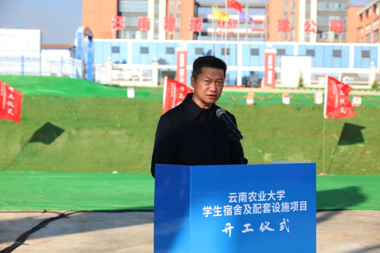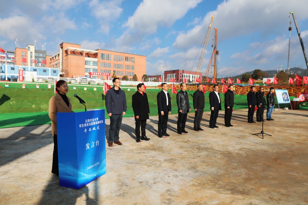 1月10日,学校学生宿舍及配套设施项目开工仪式在施工现场隆重举行。校党委书记王卫斌、校长李永和、副校长李宏,昆明市盘龙区副区长郭志雄,以及项目勘察、设计、监理、总承包等参建单位相关负责人出席仪式。仪式由副校长张慧主持。