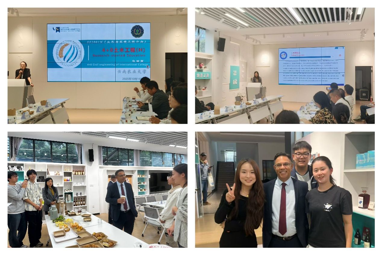 中英土木专业负责人张辅霞介绍了土木工程专业在中外合作办学背景下的发展历程、十年办学成果与国际化办学特色。中英足球专业负责人董柔就体育学院的整体概况及学校足球事业的发展作了系统分享。国际学院土木工程专业的四位学生代表分享了在中英土木工程合作项目中的学习收获与成长体验。在互动交流环节,英方教师代表围绕教育教学理念、实践实习、毕业选题及未来就业方向,为同学们答疑解惑并提供了宝贵建议。