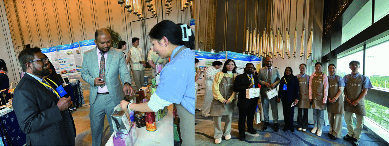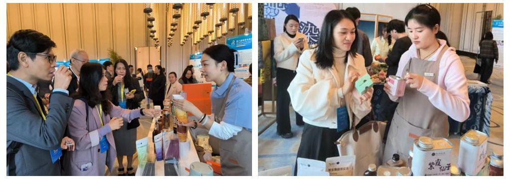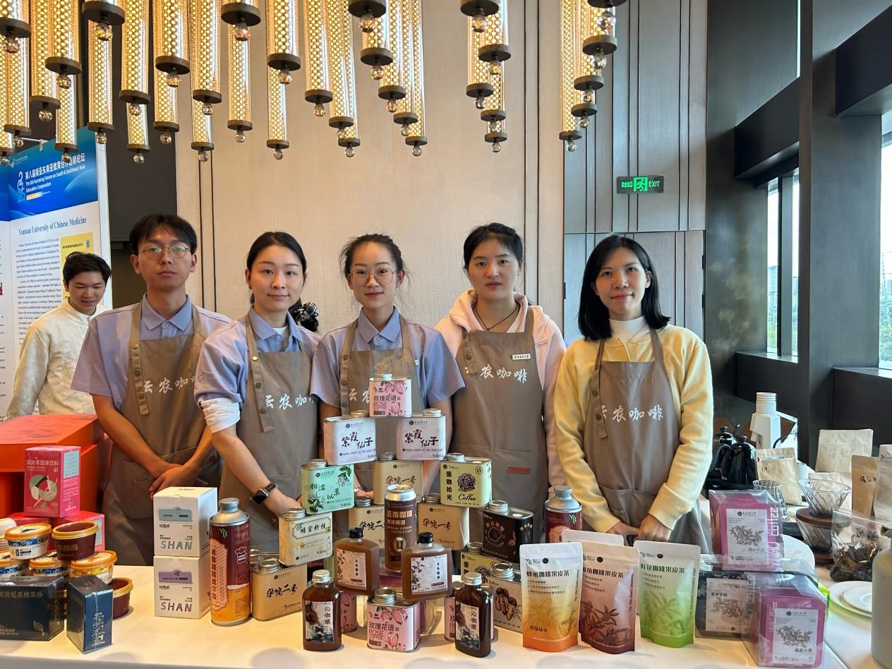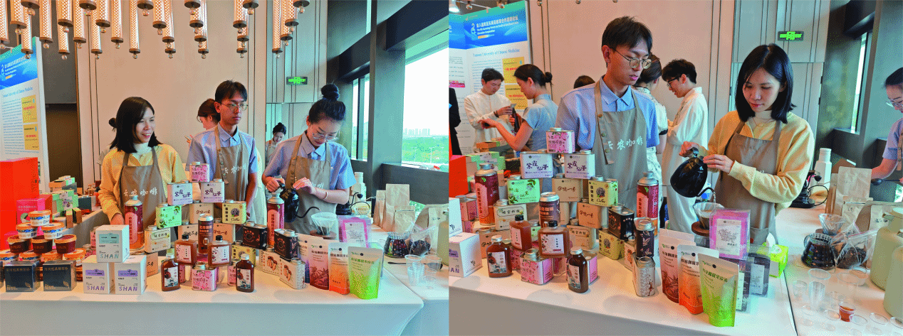 作为本次教育展文创区的一大亮点,展区现场不仅陈列了各类风味独特的系列咖啡,更带来了一系列独特的“咖啡全利用”产品,包括以咖啡果皮制成的果皮茶、利用咖啡渣酿造的咖啡啤酒、将咖啡渣“变废为宝”制作的咖啡渣饮料和咖啡渣醋,这些产品不仅可以一品云南小粒咖啡的优异风味,还展现了学校在食品科学与加工领域的深厚科研实力和创新转化能力。展位现场气氛热烈,参观者络绎不绝,众多来自南亚、东南亚等国家的高校代表对这些创新产品表现出浓厚兴趣,并围绕咖啡产业的技术合作、人才培养等问题与展区师生进行了深入探讨。