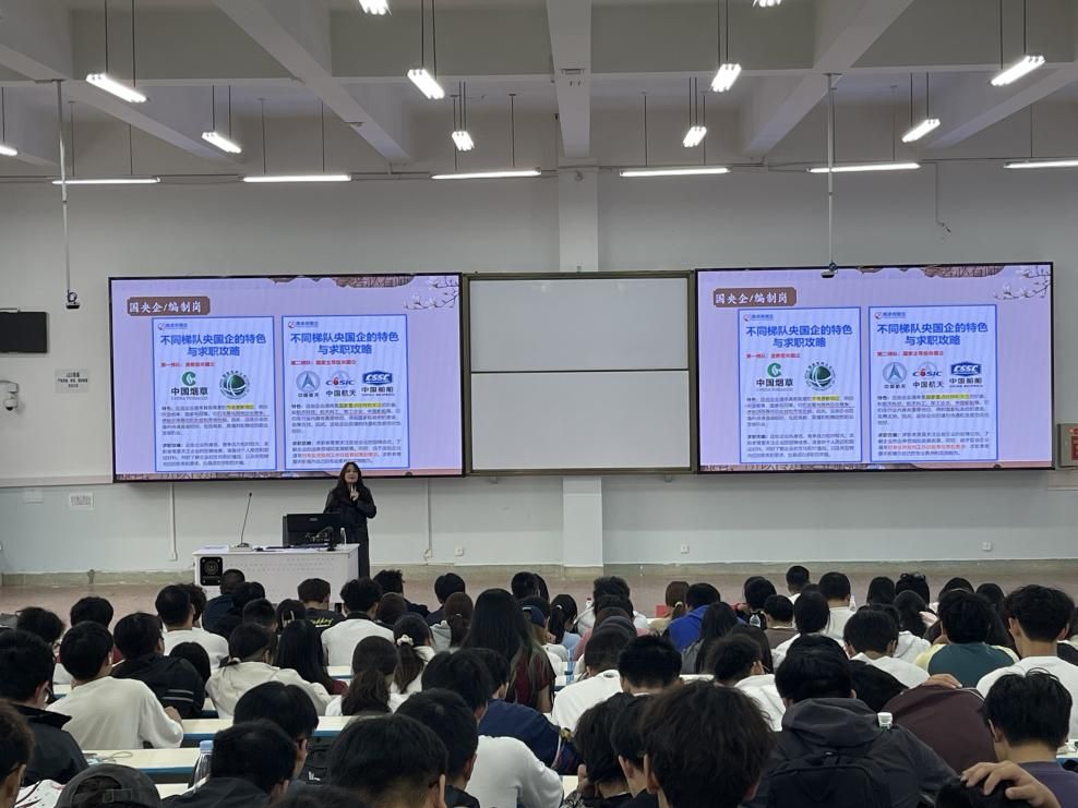 本站消息 10月31日,国际学院在明理楼阶梯教室举办就业规划专题讲座。学院党委副书记、班主任辅导员及2025级新生300余人参会。会议由学院党委副书记徐兴倩主持。