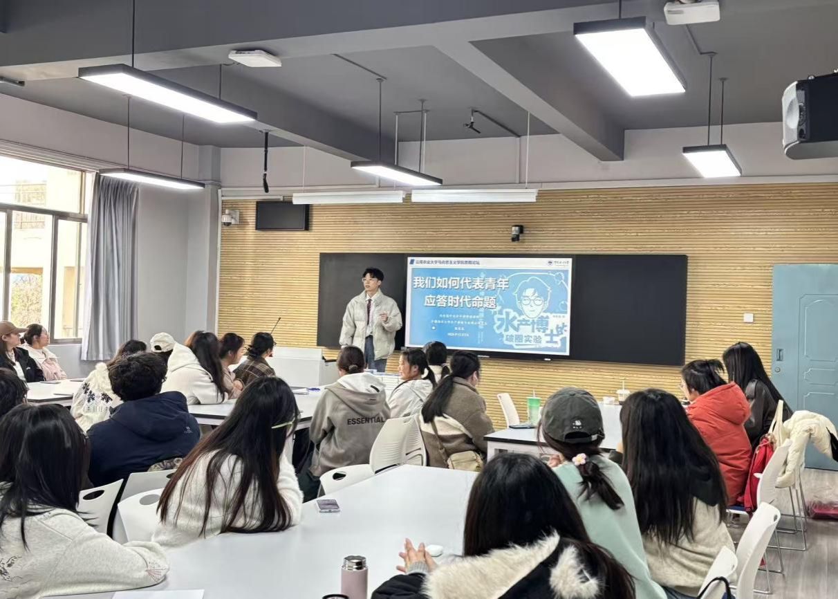 张宜良博士以“多比、多走、多看、多试”为成长方法论,结合“轨道与旷野”辩证视角,分享水产养殖与新媒体跨界实践成果。他从新媒体平台乡村振兴故事讲述、科普内容创作传播等实践探索出发,用生动案例阐释了“如何将家国理想转化为具体实践”,并启发学生思考如何让专业学习“于变局中开新局”,以青年喜闻乐见的方式传递价值力量。互动环节学生踊跃提问,张宜良博士耐心解答,鼓励同学们深化理论与实践的融合。