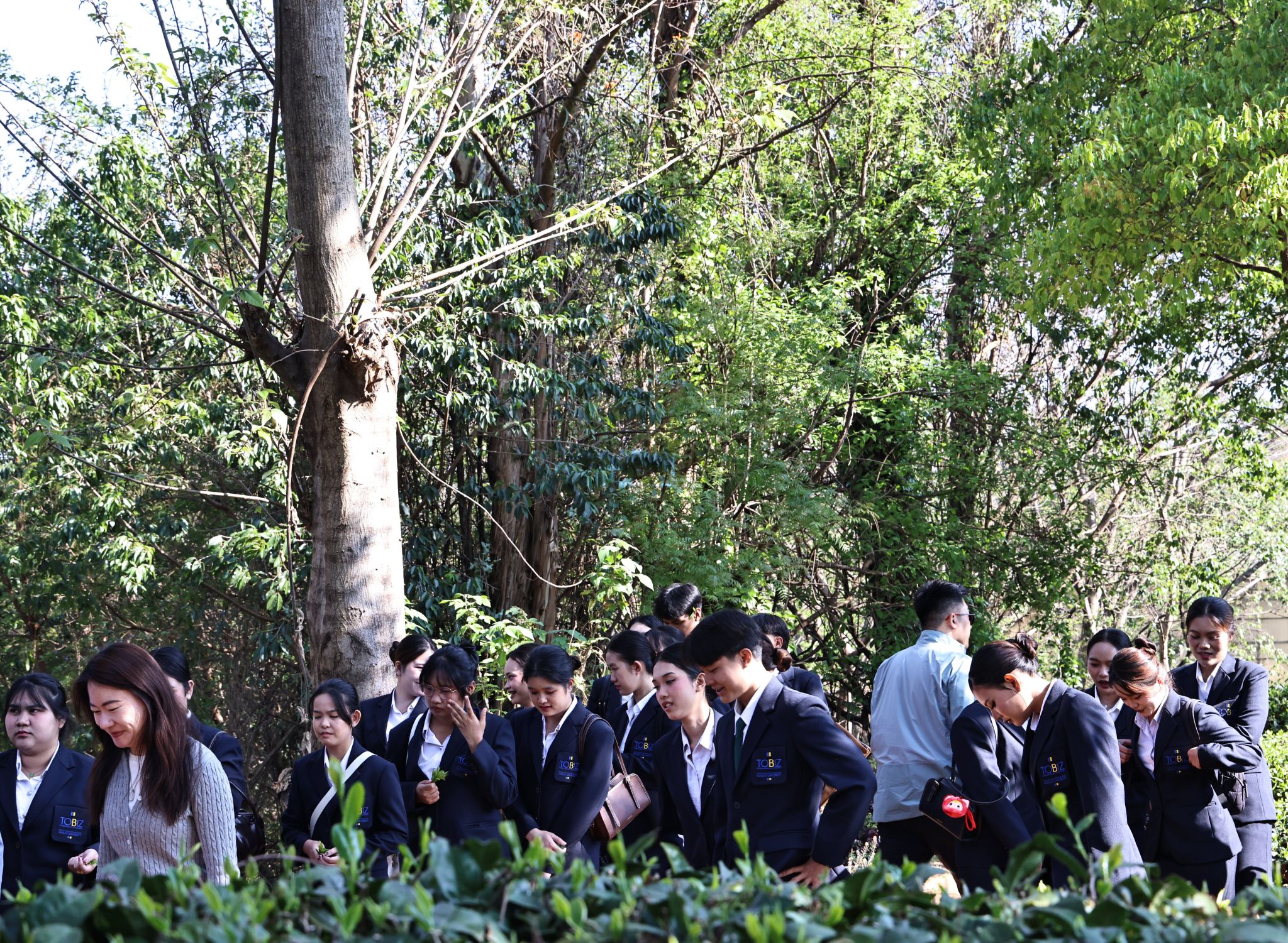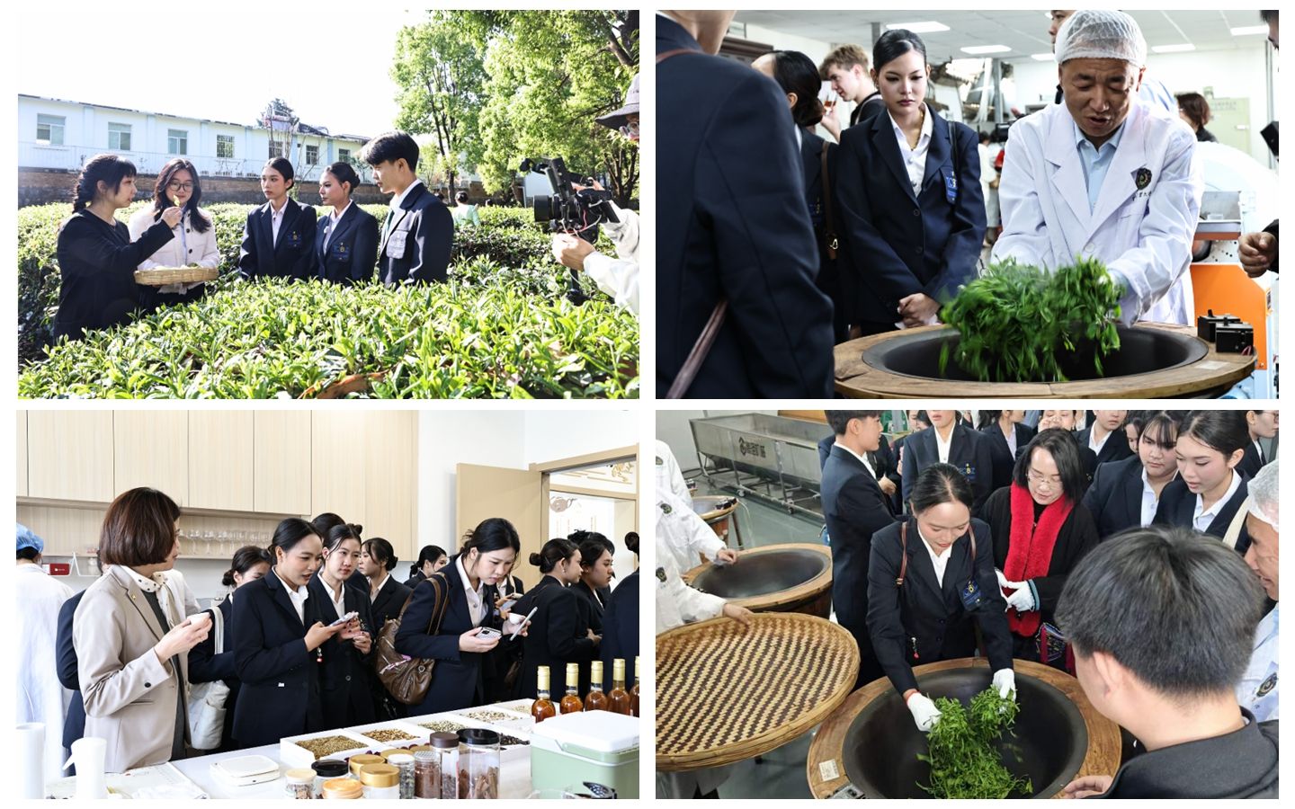 上午,泰国梅州大学一行前往学校茶园开展实践教学交流。梅州大学师生亲身体验茶叶采摘技艺,感受云南特色茶树品种的生长特性与采摘标准。茶学院教师围绕茶叶加工工艺、品质形成等内容进行细致讲解,让泰方师生直观了解从鲜叶到成品茶的完整流程,沉浸式体验中国传统茶叶加工技艺。随后,师生一行前往茶学院,参观新茶饮、新茶食实验室,深入了解我校在茶产品创新研发等领域的探索与成果。