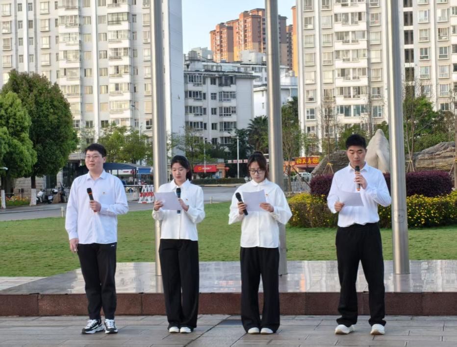 晨曦初露,升旗仪式正式开始。伴随着激昂的《义勇军进行曲》,五星红旗冉冉升起,全体师生肃立注目、齐唱国歌,炽热的爱国情怀在每个人心中激荡。