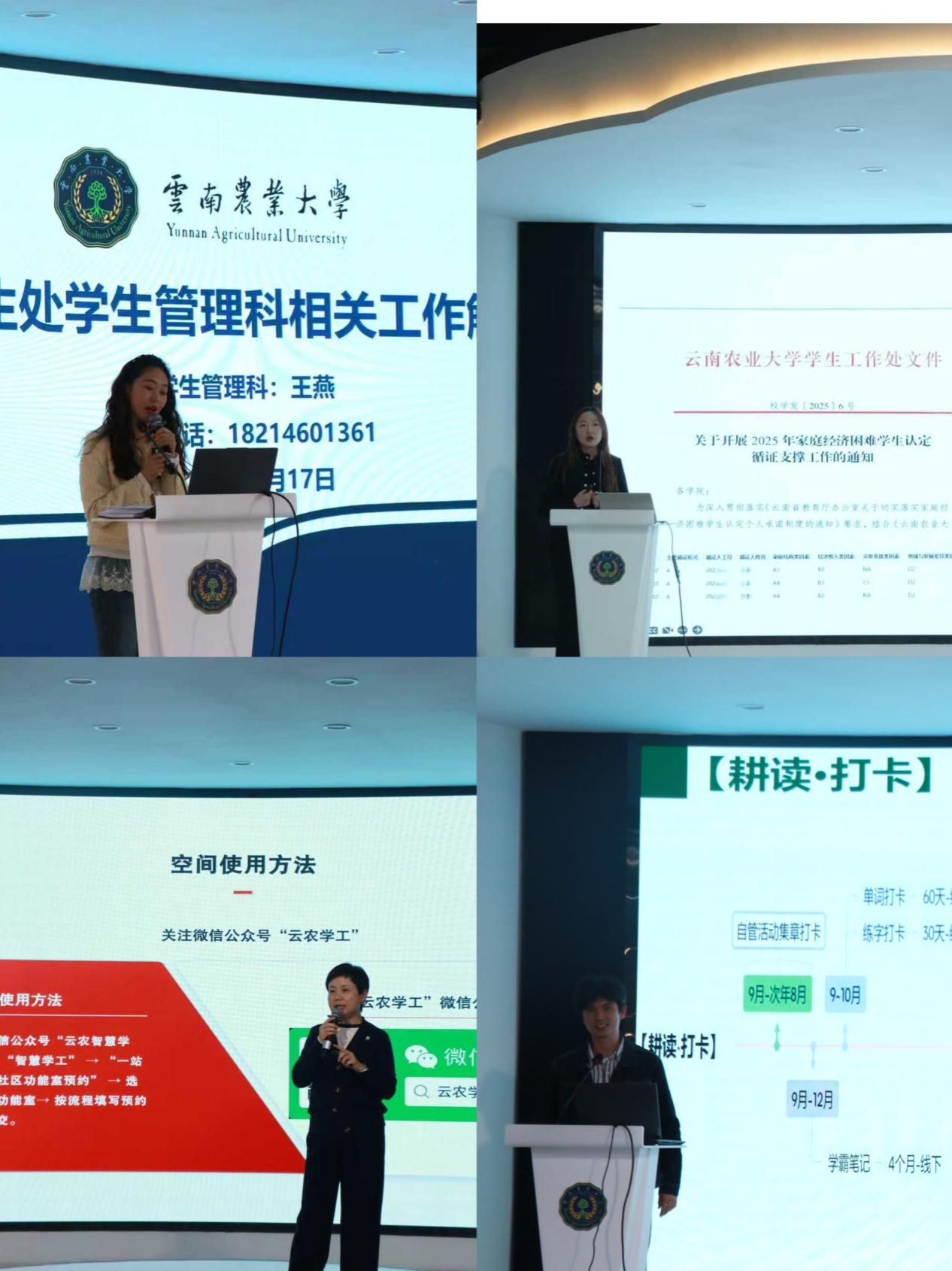 此次培训由学生工作部各科室负责人依次开展专题报告。思政科带来“凝心聚力,做好学生思想政治工作”报告,心理健康教育咨询中心解读“同心护航,携手育心”心理健康教育协同内容,武装部进行大学生应征入伍政策宣讲。在下午的培训中,宿管科、学生科、学生中心、综合科、资助科分别围绕安全底线筑牢、学生管理工作解答、学风建设、“一站式”学生社区、家庭经济困难学生资助等主题展开讲解,内容贴合辅导员工作实际,为辅导员提升业务能力提供精准指导。