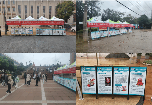 活动期间,保卫处制作了15块主题宣传展板与4条宣传横幅在学校师生流量较大的区域进行循环展出,并向过往师生逐一发放禁毒和反邪教知识手册,面对面进行宣传讲解。