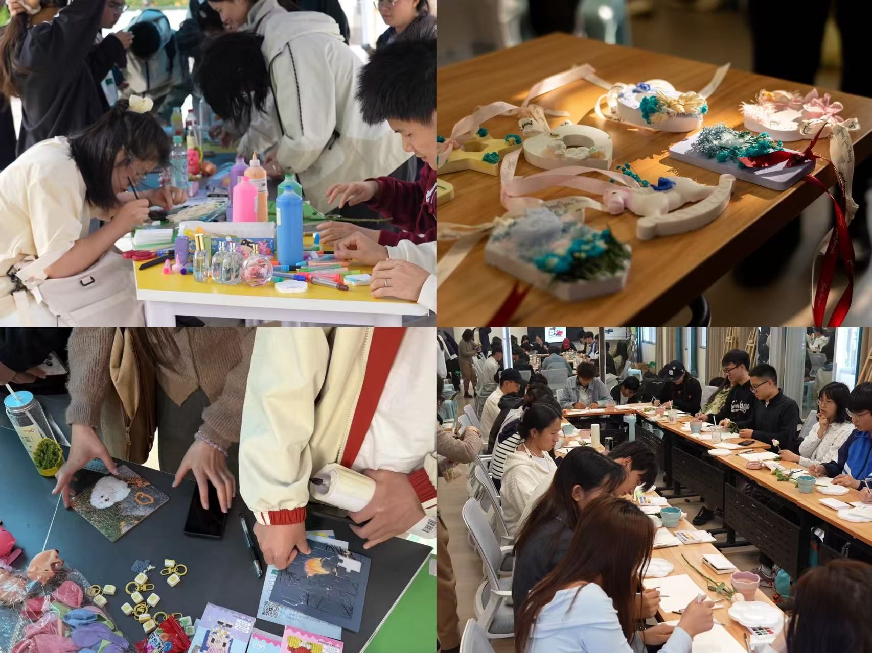 系列活动设置了六大体验板块,其中“春影拾光”“草木心香”“拼贴心景”“同心向暖”等活动以摄影、香牌制作、拼图协作、趣味互动等形式,让同学们在轻松的氛围中放松身心、增进交流。