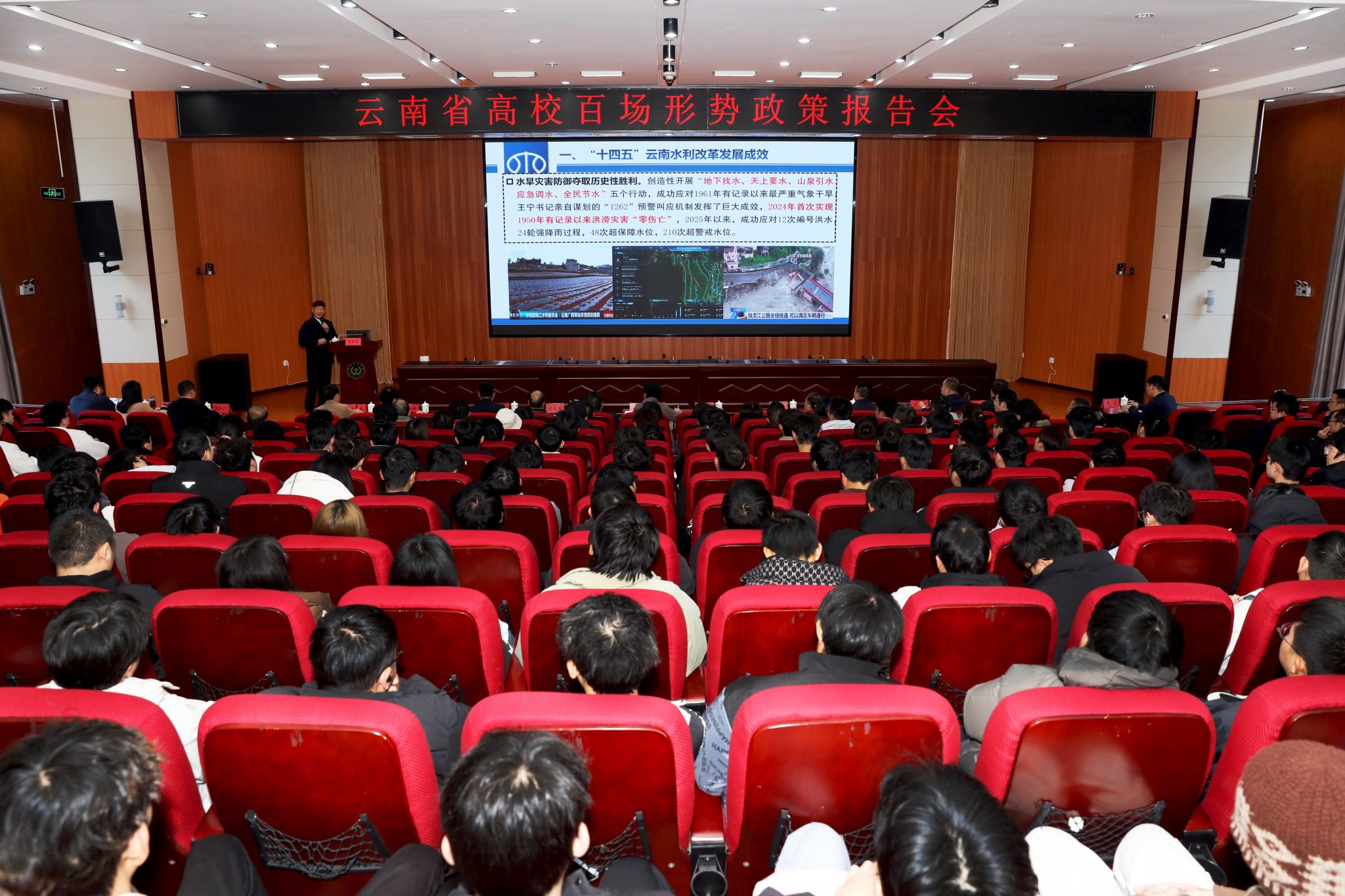 本站消息 11月21日,学校举办2025年云南省高校百场形势政策报告会,云南省水利厅党组书记、厅长胡朝碧作题为“关于云南省涉水新业态开发利用有关工作情况”的专题形势政策报告。报告会由校党委副书记徐华主持,在家校领导,水利学院、建筑工程学院等学院师生代表共200余人参加报告会。胡朝碧从“十四五”规划中云南水利改革发展成效、全面推进“厅校”合作、涉水新业态背景与意义、涉水新业态发展基础、开发利用总体思路、研究方向与实践等方面,...