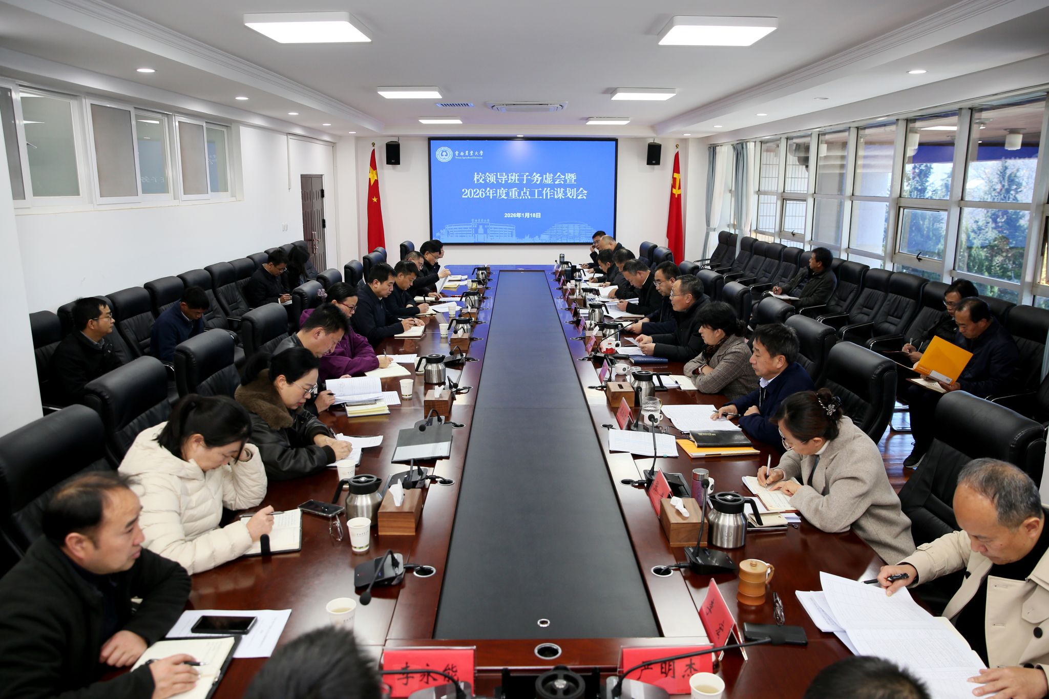 本站消息 1月18日,学校召开校领导班子务虚工作会暨2026年度重点工作落实会。会议立足学校发展全局,旨在凝聚思想共识,系统梳理“大讨论”“大调研”“战略研讨”成果转化的阶段性进展,精准剖析发展路上的短板弱项,科学谋划2026年重点工作和“十五五”发展蓝图。校党委书记王卫斌出席会议并讲话,校长李永和主持会议,党政领导班子成员出席会议。会上,校领导班子成员紧扣分管领域工作实际,依次汇报分管领域重点工作推进情况、大讨论成果落实成效、...