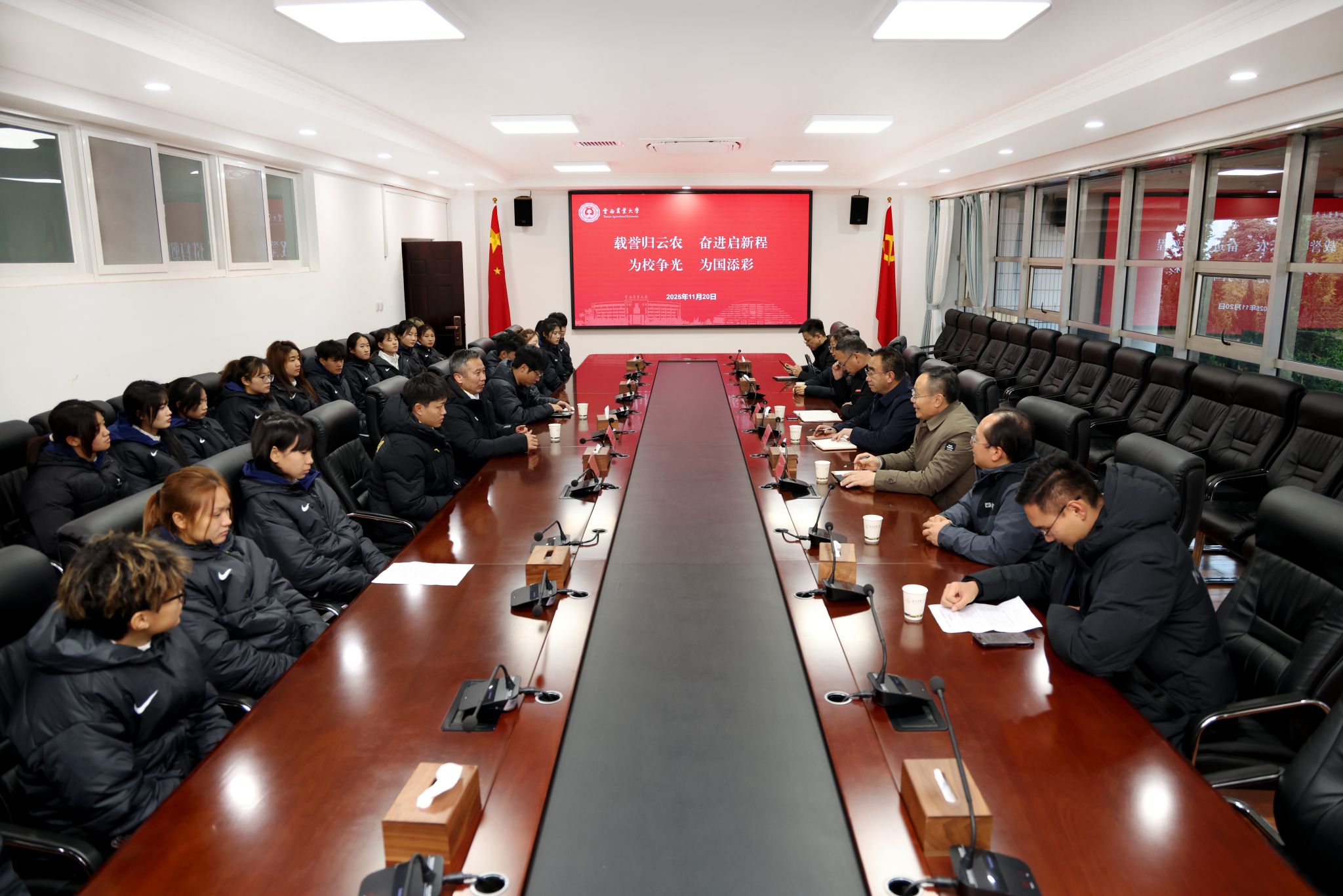 本站消息 11月20日,学校举办“载誉归云农 奋进启新程”座谈会,喜迎全运会冠军龙佳校友载誉返校,共同庆祝学校女子足球队荣获全国季军的优异成绩。校党委书记王卫斌,校党委副书记、校长李永和,校党委副书记黄...